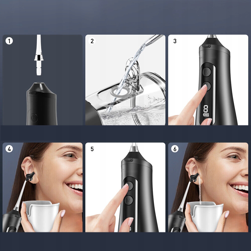 ✔️2 типа насадок: В комплект для чистки ушной серы входят два типа насадок: водоструйная с 3 отверстиями или водоструйная с 5 отверстиями, поэтому вы можете выбрать ту, которая подходит вам лучше всего. Благодаря 6 сменным насадкам (по 3 каждого типа) пользоваться ополаскивателем для ушей можно безопасно и гигиенично всей семьей.