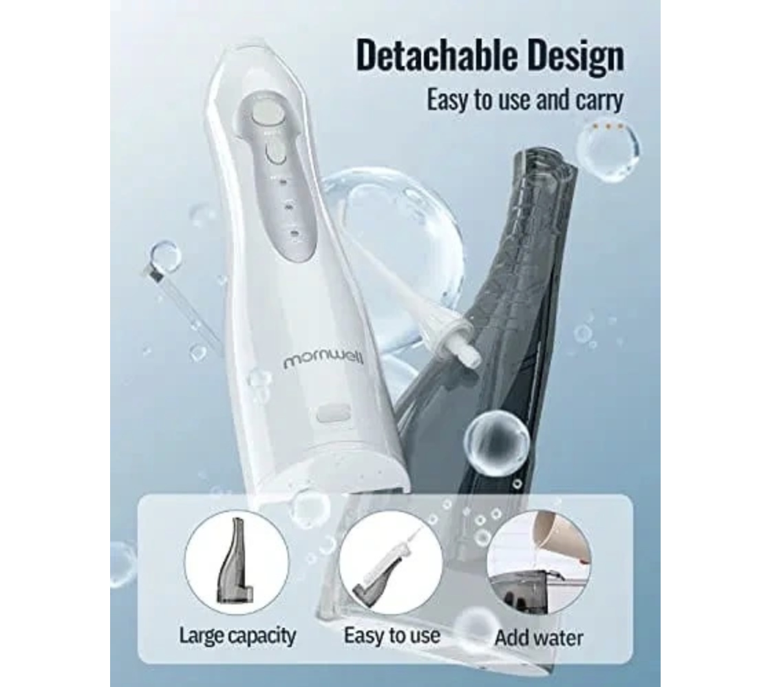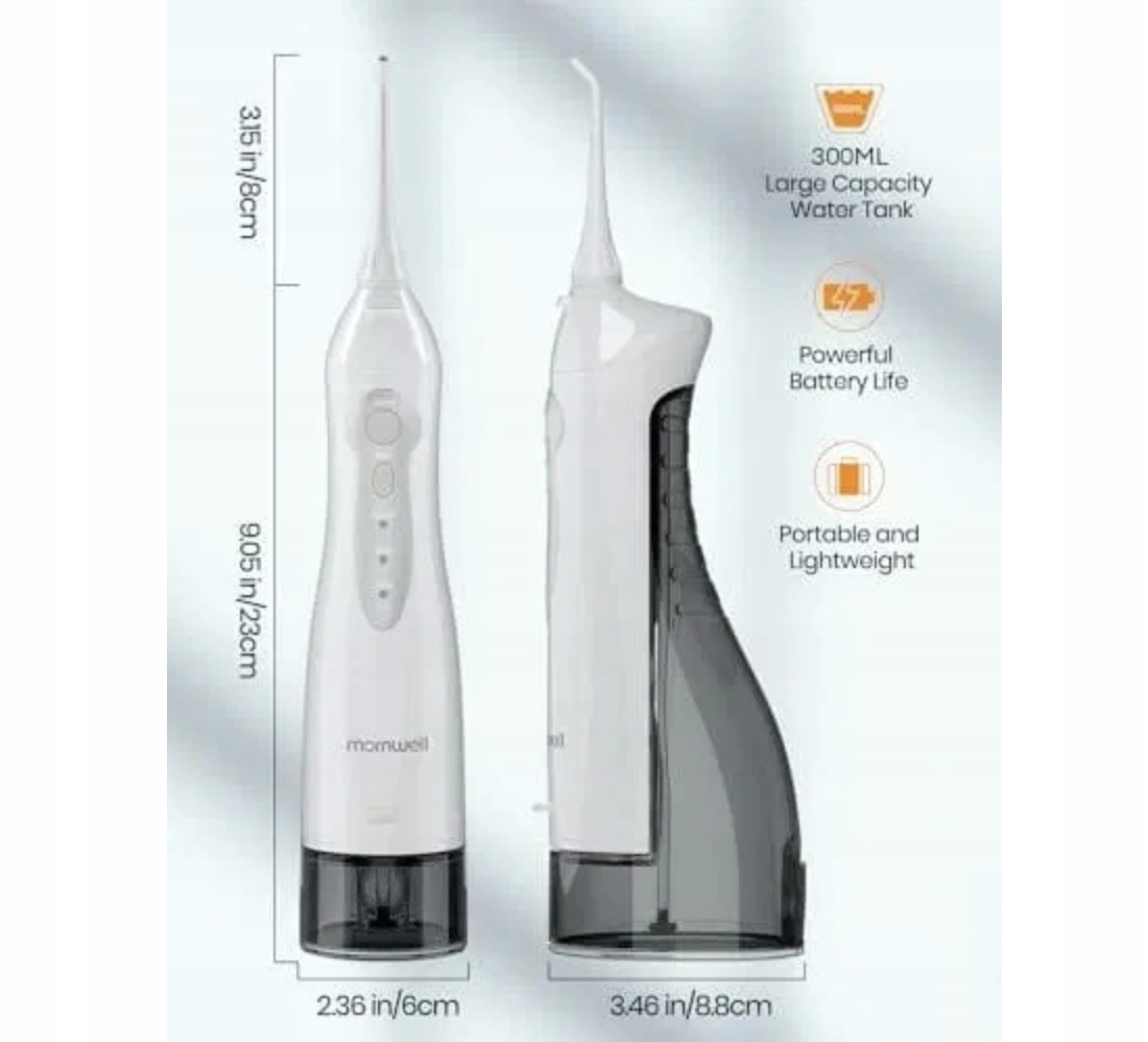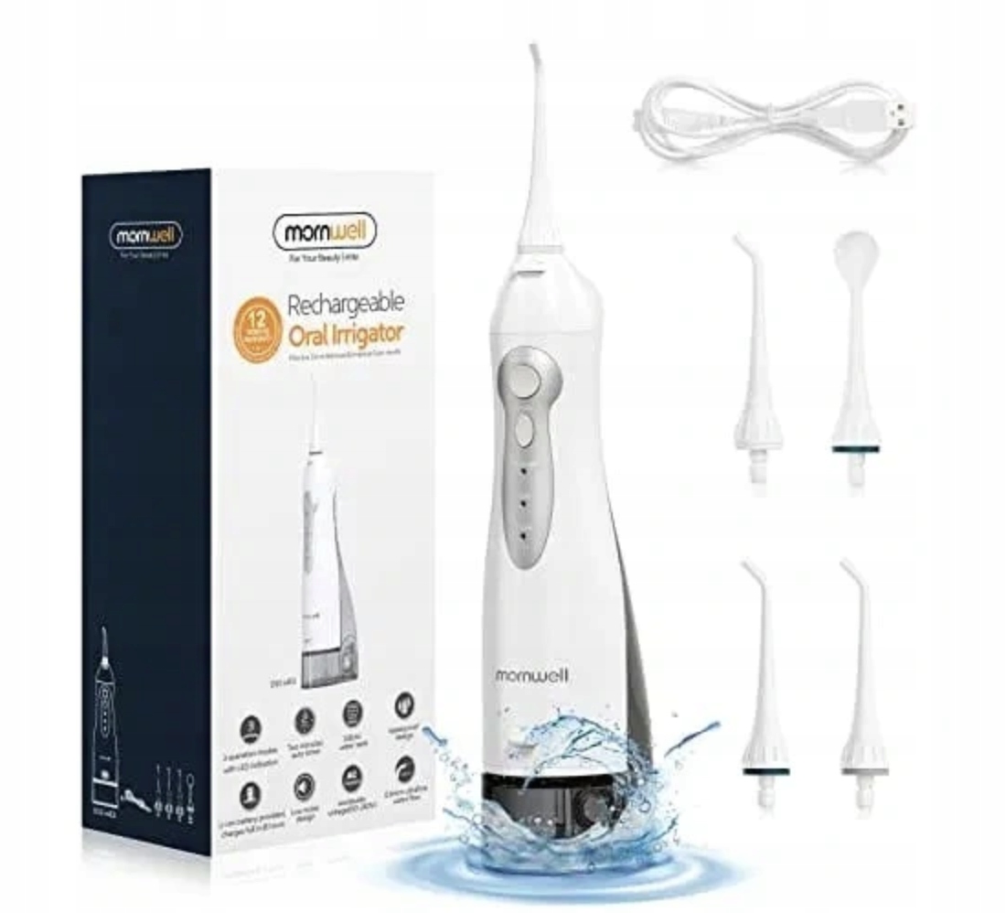 Ирригатор Mornwell обеспечивает давление воды от 40 до 90 фунтов на квадратный дюйм при частоте 1400 импульсов в минуту. Глубоко очищает каждый уголок более тщательно, чем традиционная зубная нить. Удаляет пятна и остатки между зубными промежутками или складками десен. Обеспечивает здоровье полости рта и свежесть дыхания