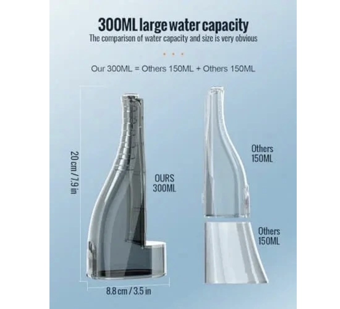 Съемный резервуар для воды емкостью 300 мл с нескользящей конструкцией обеспечивает подачу воды примерно на 60 секунд, чего достаточно для выполнения всей процедуры чистки полости рта.
