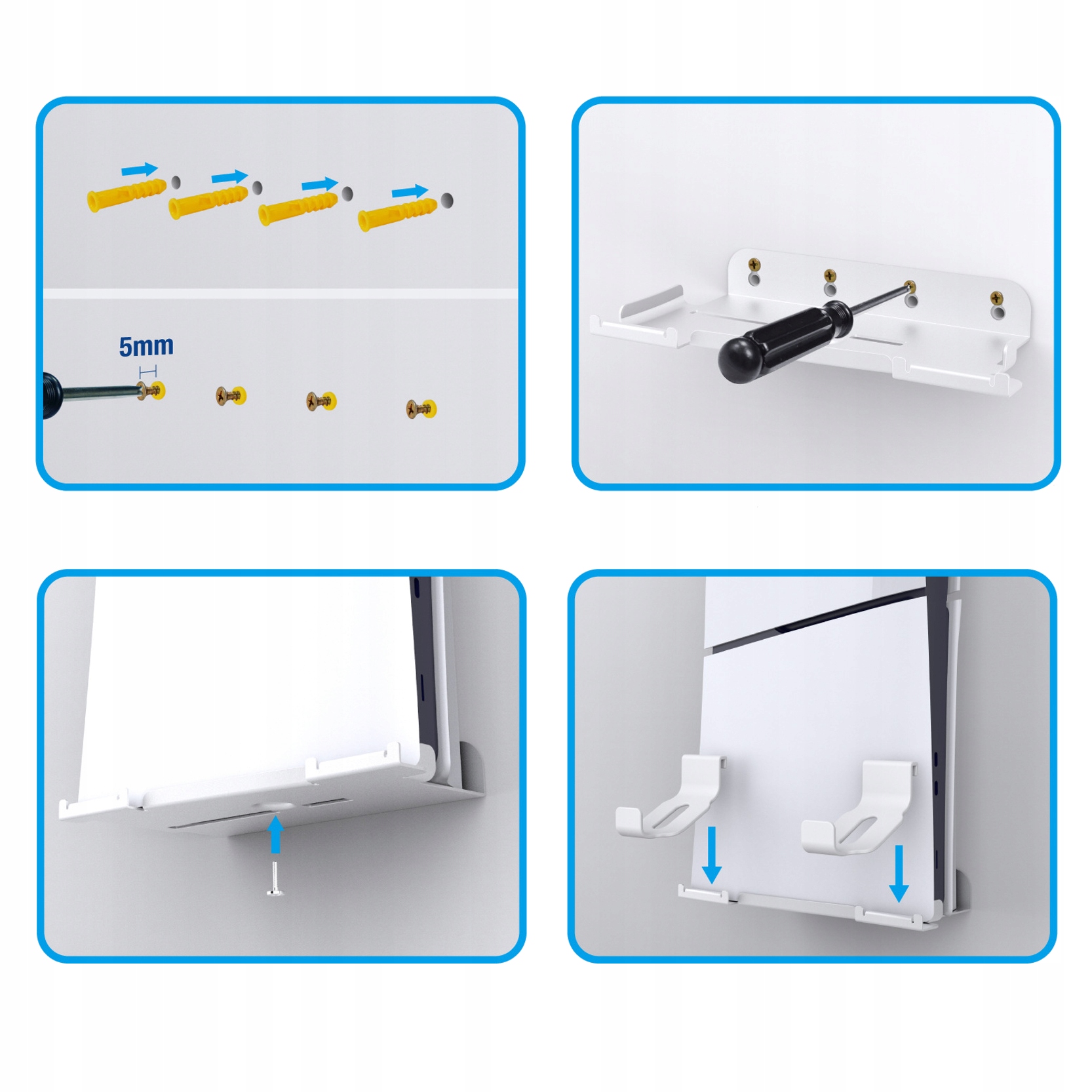 IRIS Металева настінна вішалка, підставка під консоль PS5 SLIM, біла