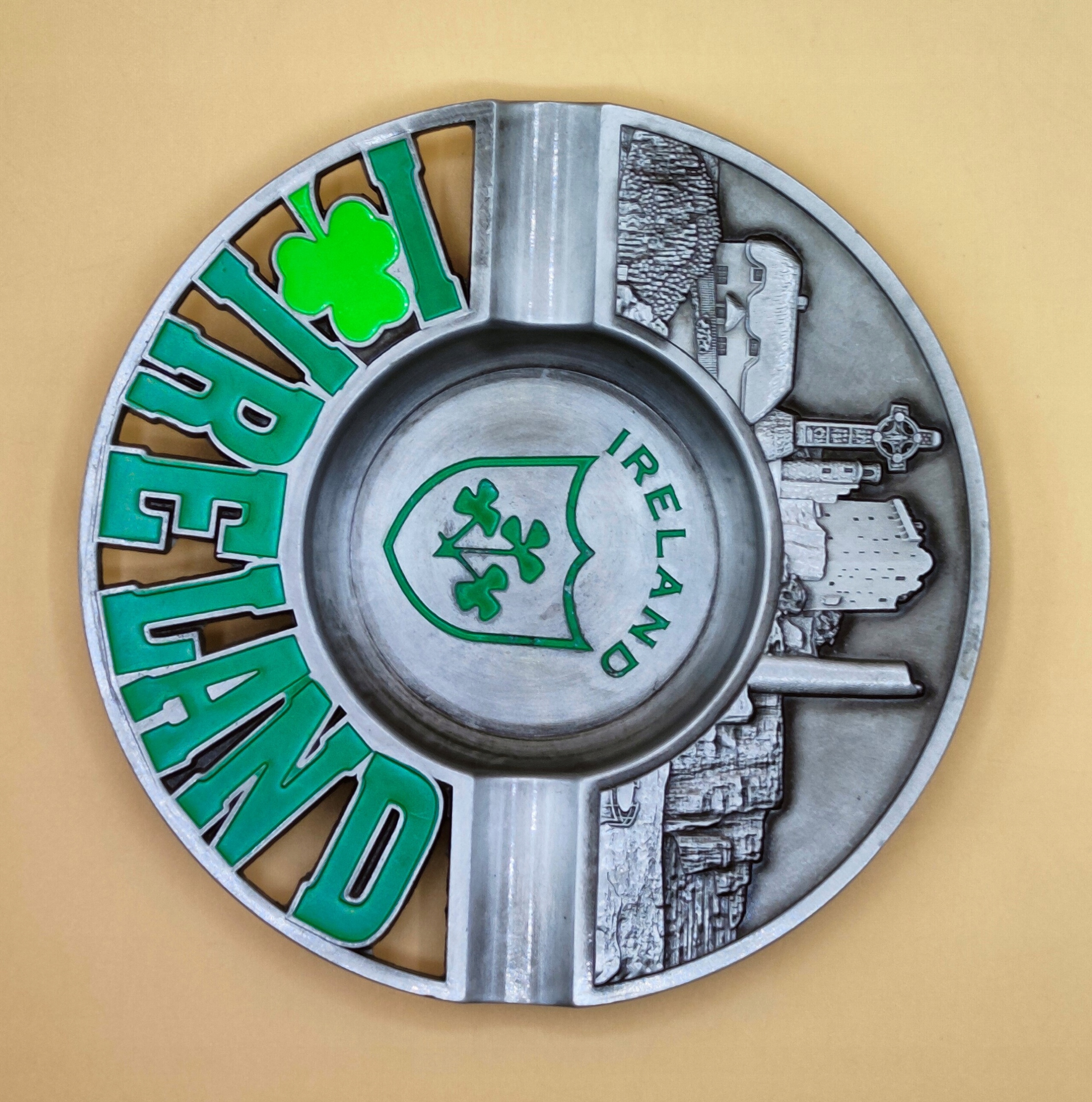 Коллекционная металлическая пепельница, Ирландия, интересный сувенир из ИРЛАНДИИ - видны различные памятники Ирландии
