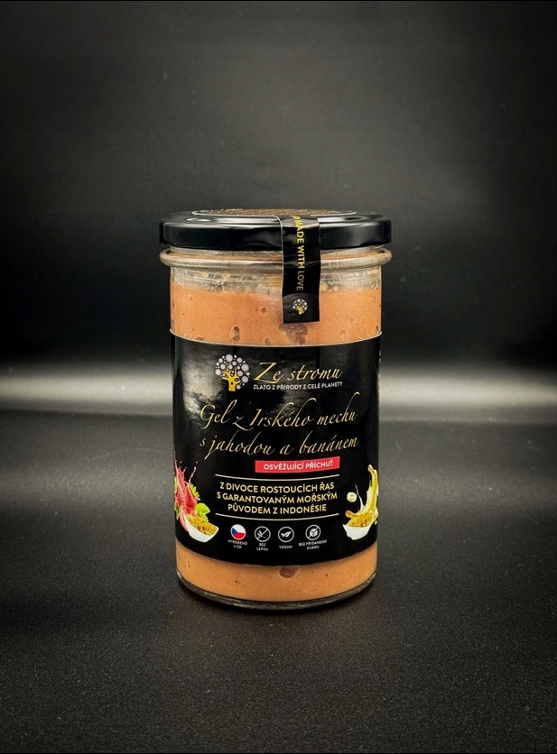 Этот гель изготовлен из натурального дикого морского мха, происхождение которого гарантировано из Индонезии. Вода имеет решающее значение, мы используем ионизированную щелочную воду с pH 9,5. Изготовлен из 100% клубнично-бананового пюре. Веганский, безглютеновый. Вкусный, нежный вкус.