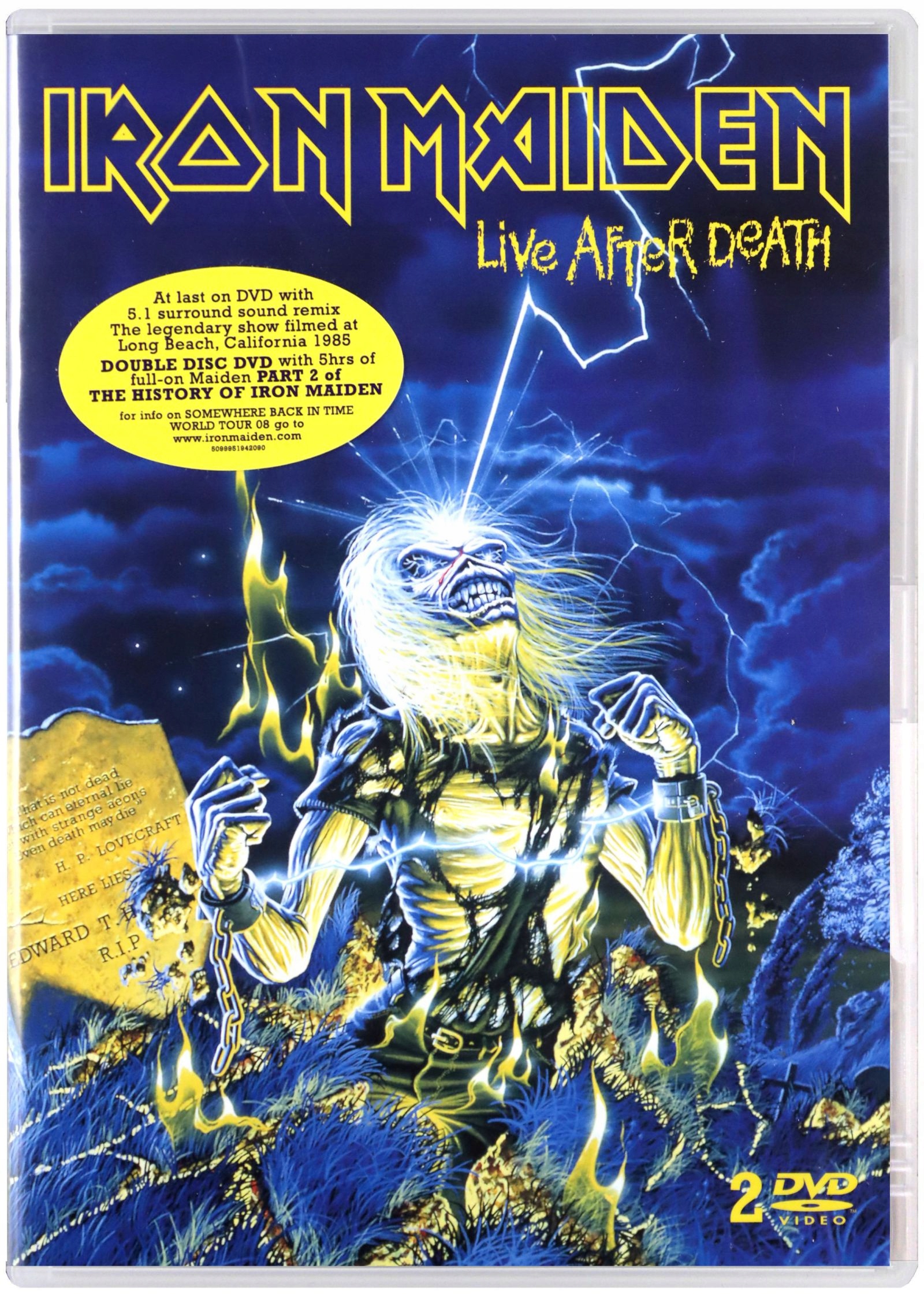 Двойной DVD Live After Death включает в себя легендарные записи четырех последовательных концертов Iron Maiden на Long Beach Arena в Калифорнии (1984). Первый диск (Live After Death) содержит полную запись 90-минутного концерта (первоначально снятого на 35-миллиметровую пленку, но здесь качество значительно выше типичных концертов 1980-х). Второй DVD содержит второй эпизод документального фильма History of Iron Maiden (продолжение биографии, начатой на DVD The Early Days), а также редкие, неопубликованные полные материалы Behind The Iron Curtain, Rock In Rio '85, Ello Texas и фотогалерея, музыкальные клипы, графика, список концертов, списки треков и другие дополнения. Это уникальный и исчерпывающий релиз, удовлетворяющий аппетиты поклонников этой группы.
