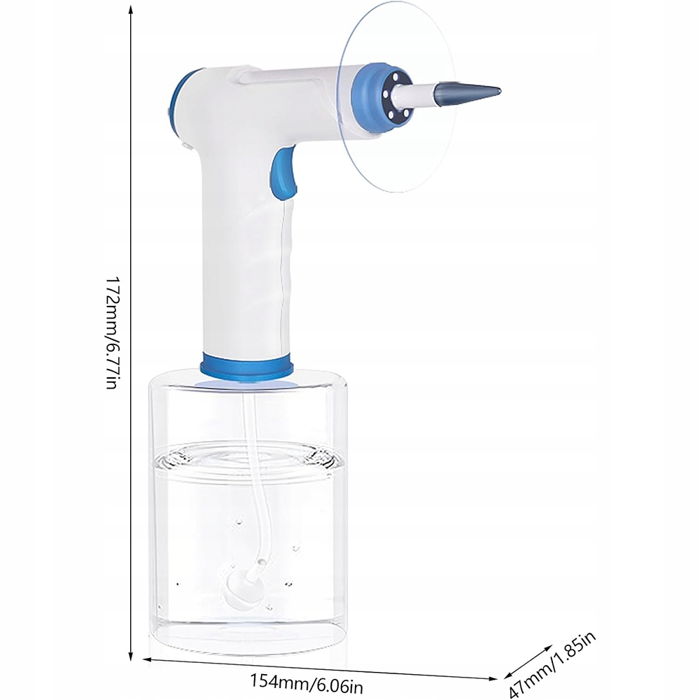 В наборе для удаления ушной серы Ear Cleaner используется многоразовый флакон емкостью 500 мл и долговечный аккумулятор емкостью 2000 мАч, обеспечивающий 7 часов непрерывной работы.