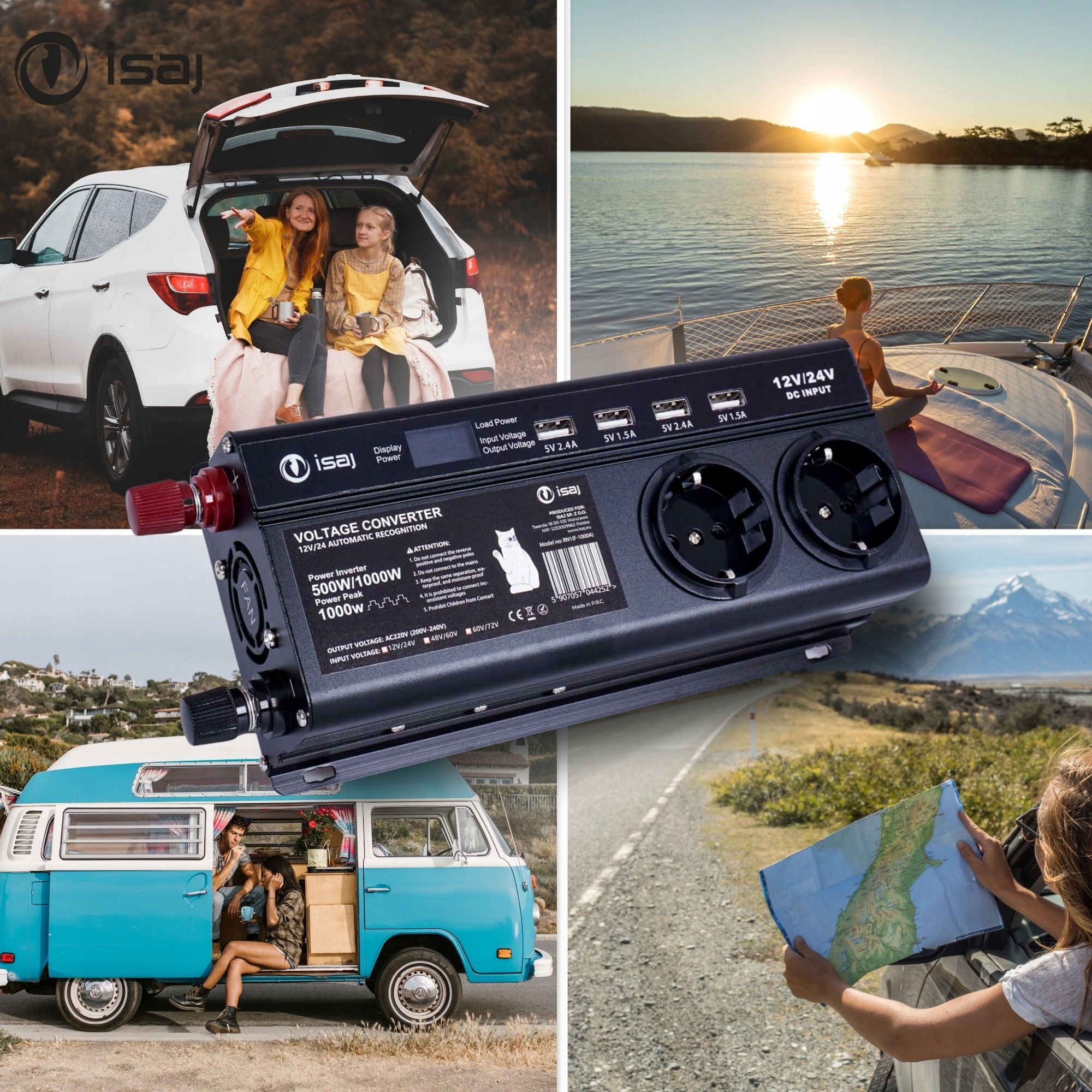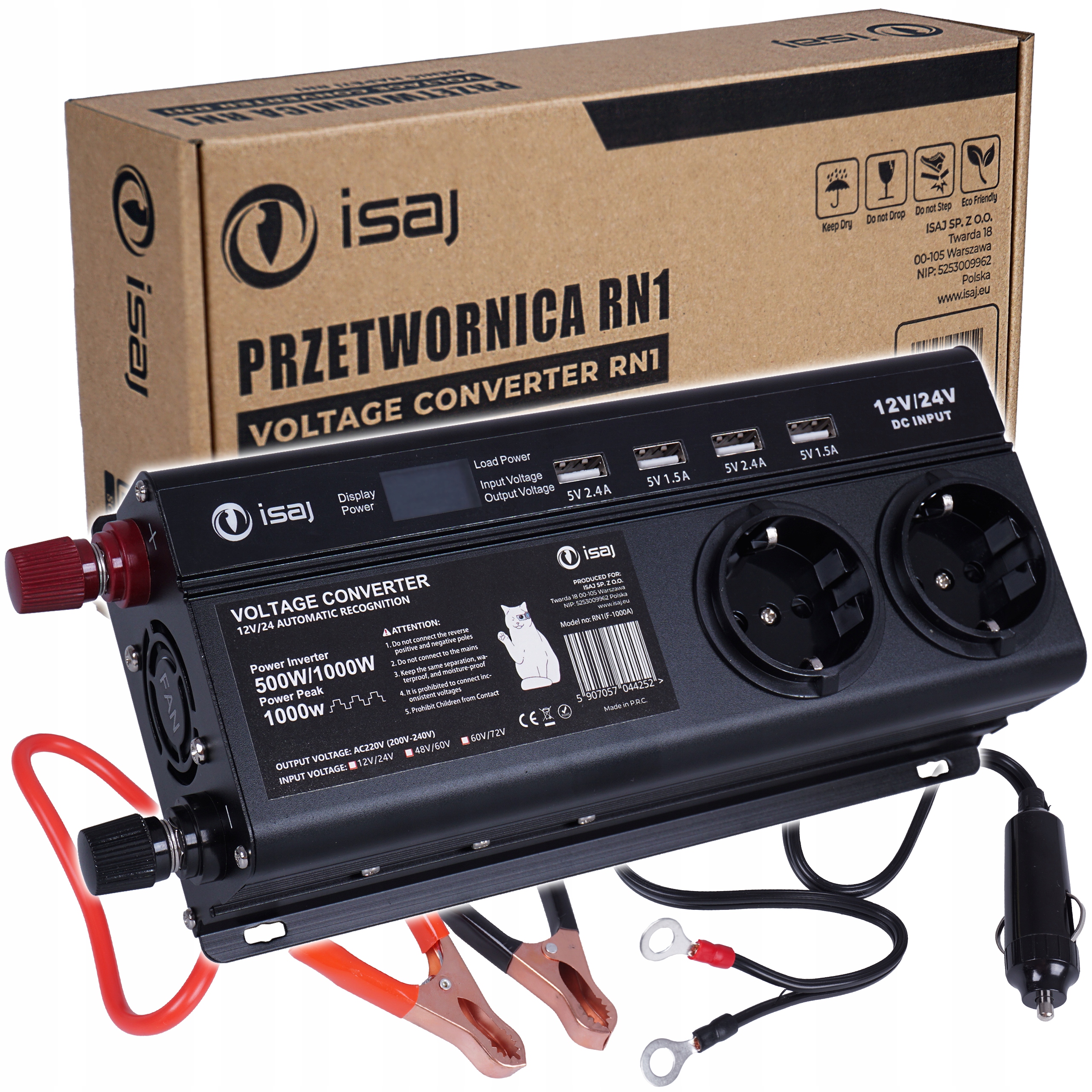 ISAJ RN1 12V 24V 230V CAR INWERTER 500W 1000W USB