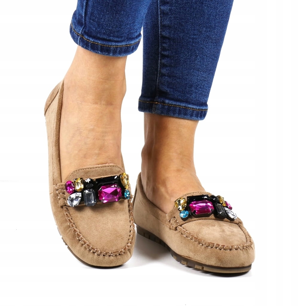 ТЕМНО-БЕЖЕВЫЕ МОКАСИНЫ С КАМНЯМИ ОЧЕНЬ УДОБНАЯ МЯГКАЯ Стелька
