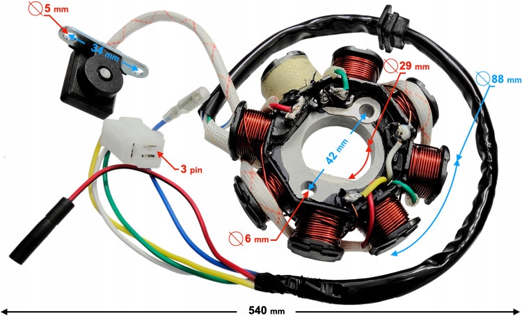 - Диаметр крепежных отверстий статора: 6,5 мм.
