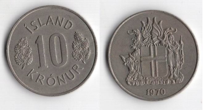 ИСЛАНДИЯ 1970 10 КРОНОВ
