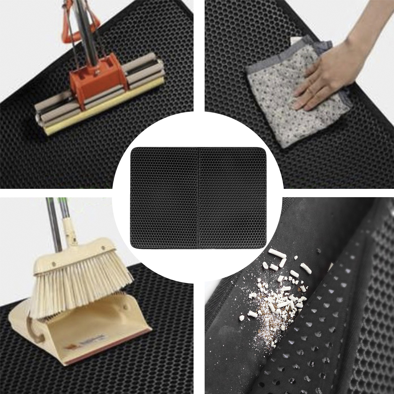 Коврик имеет специальные отверстия, которые впитывают наполнитель после каждого использования кошкой туалетного лотка, поэтому наполнитель не будет разноситься по квартире. Коврик для туалетного лотка имеет гладкую поверхность и его очень легко чистить. Все, что вам нужно сделать, это поднять первый слой и высыпать гравий. Коврик также очень легкий и его легко носить с собой.