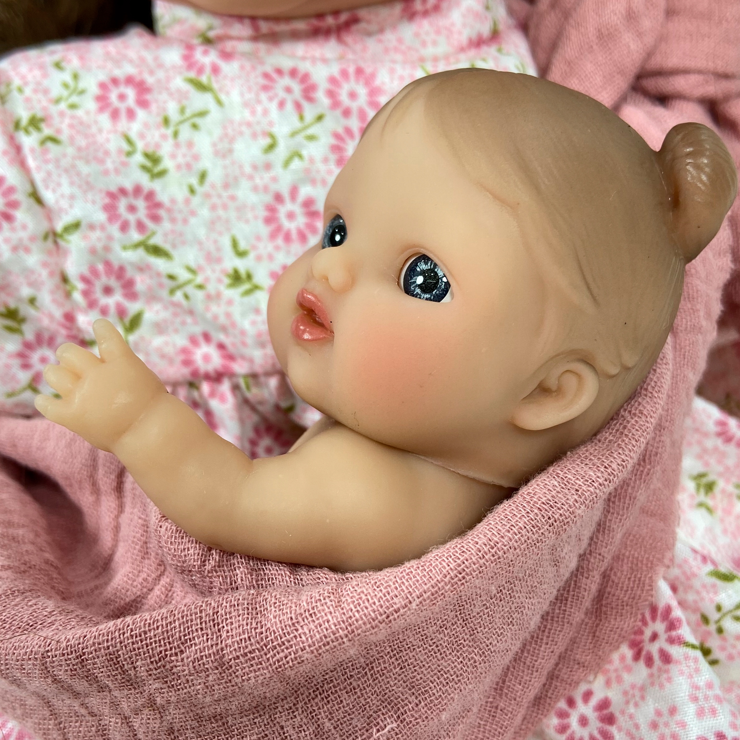 - Одеты в красивое платье с цветочным рисунком, в комплект входят туфли, повязка на голову и шарф, чтобы носить маленького «ребенка».