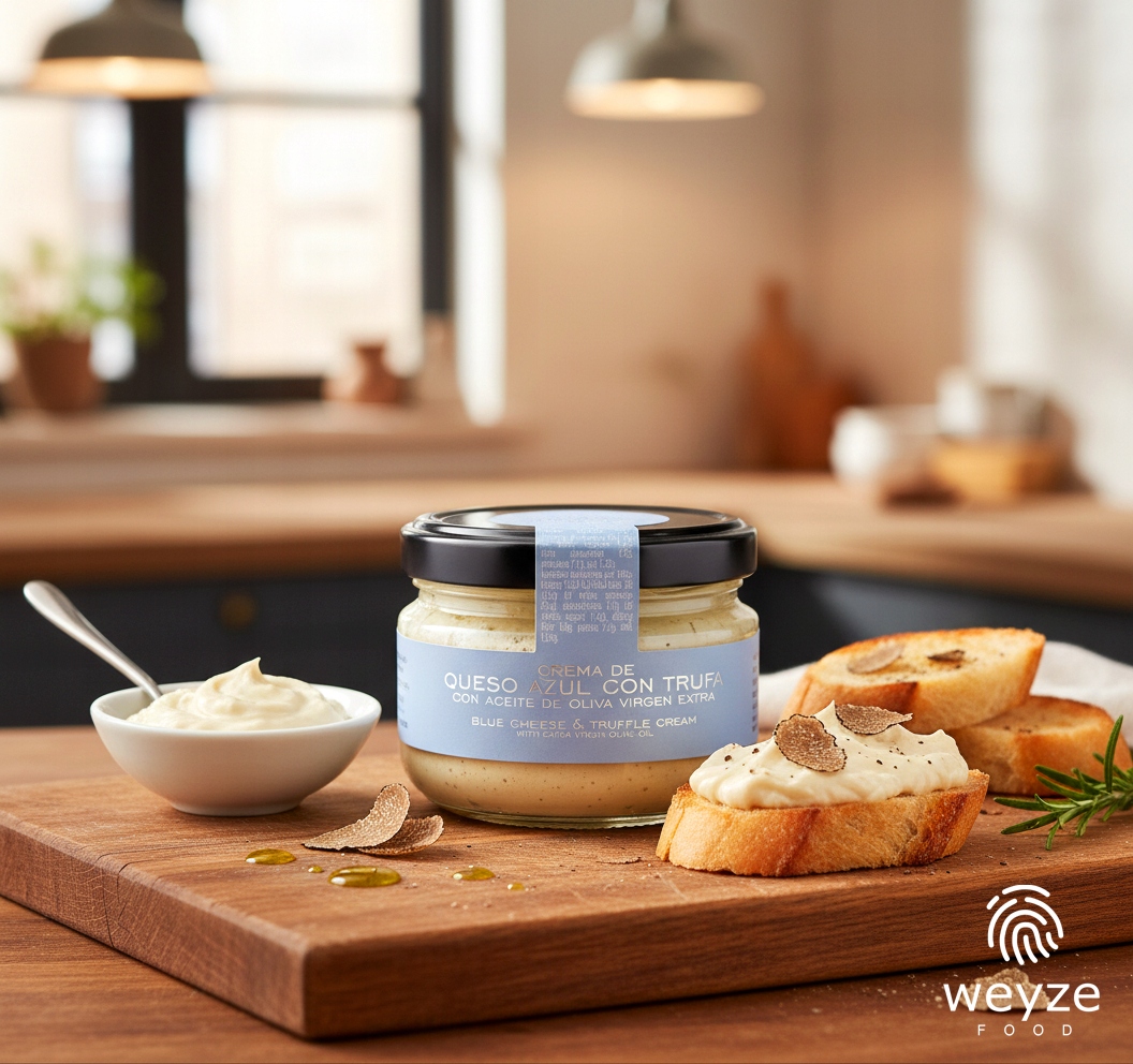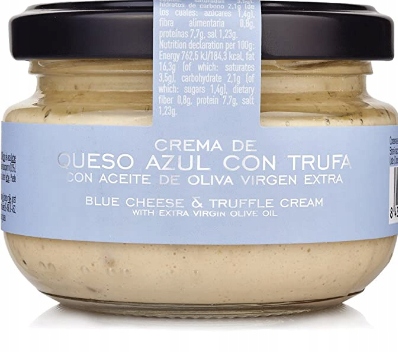 Крем из голубого сыра с трюфелем — восхитительное сочетание на основе оливкового масла первого отжима. Имеет интенсивный вкус, учитывающий особенности голубого сыра, но сочетание с трюфелем придает ему более мягкий и изысканный характер.