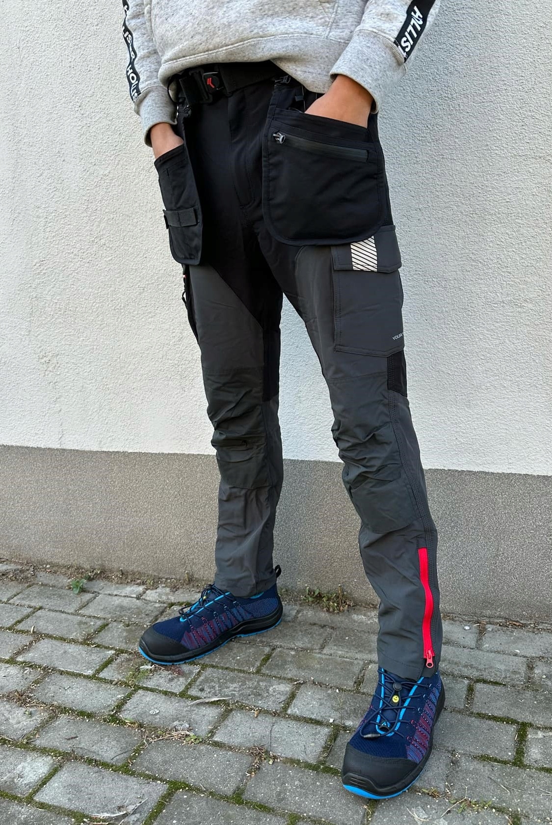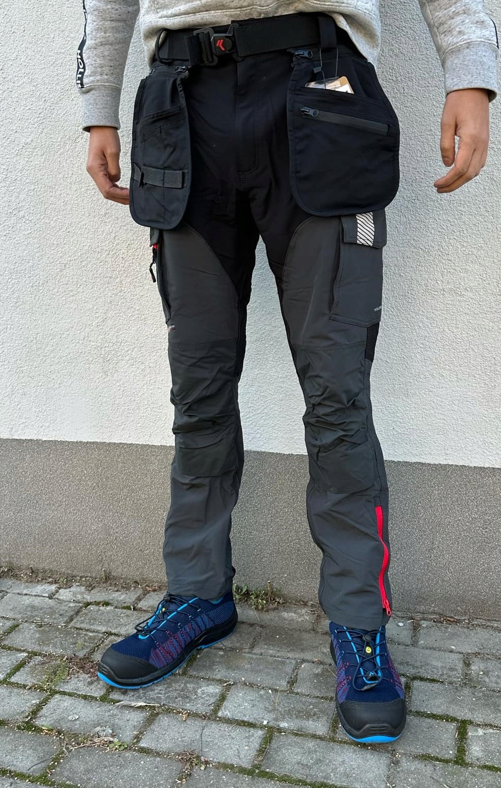 штаны оснащены двумя передними и задними карманами, а также большим карманом слева, а следующий справа с дополнительным карманом, прикрепленным к ленточной блокировке. Дополнительные, съемные карманы для инструментов увеличивают функциональность этой модели. (Видимо на дополнительных фотографиях)
