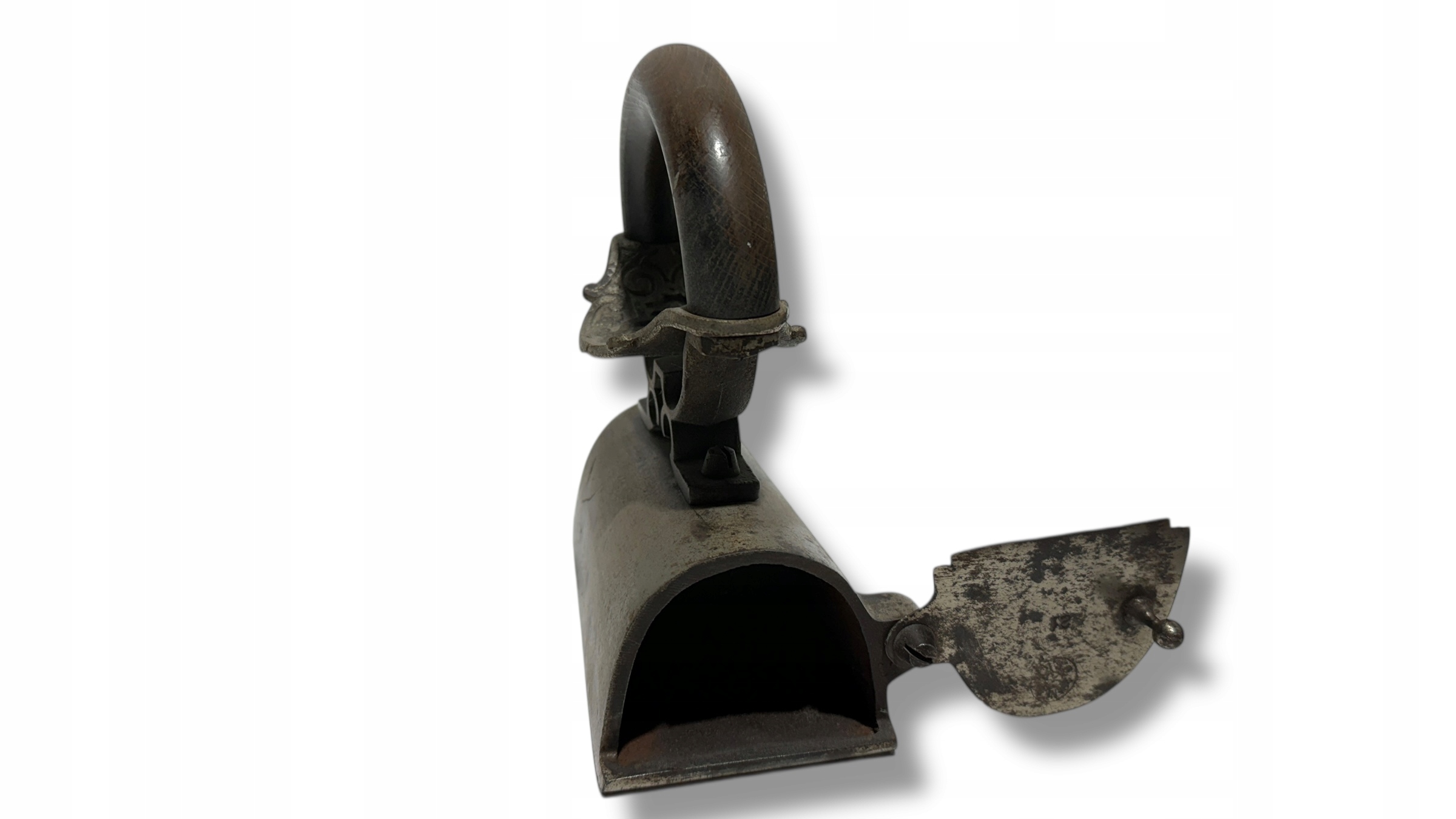 Предмет аукциона — старинный старинный утюг с красиво украшенной душой