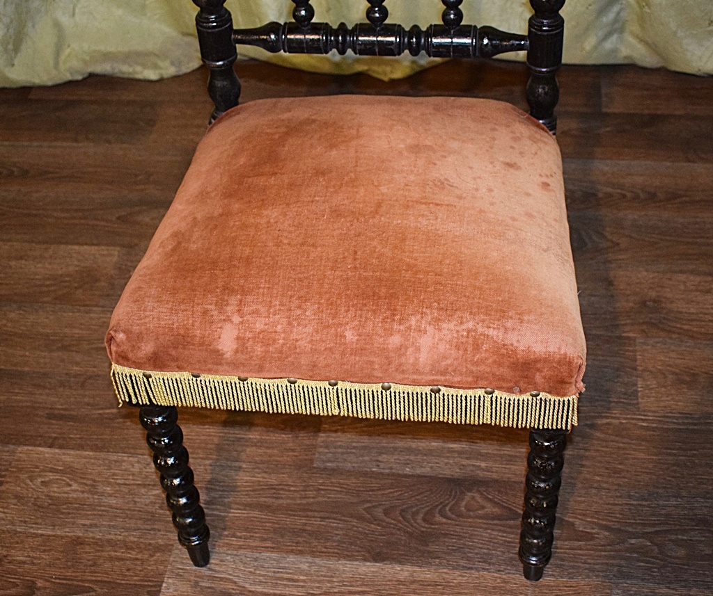 Стильный на колене, использованная мебель, сделанная около 50-60 лет назад орехового дерева. Черное дерево, обивка из плюшевого материала в кирпичном краю. Я определяю состояние навсегда, оно не требует реконструкции, дерева без полостей, стабильной структуры, обивки в хорошем состоянии.
