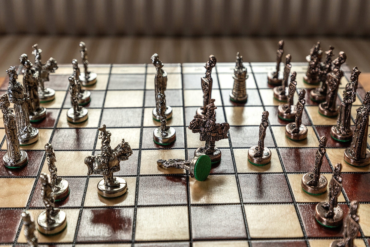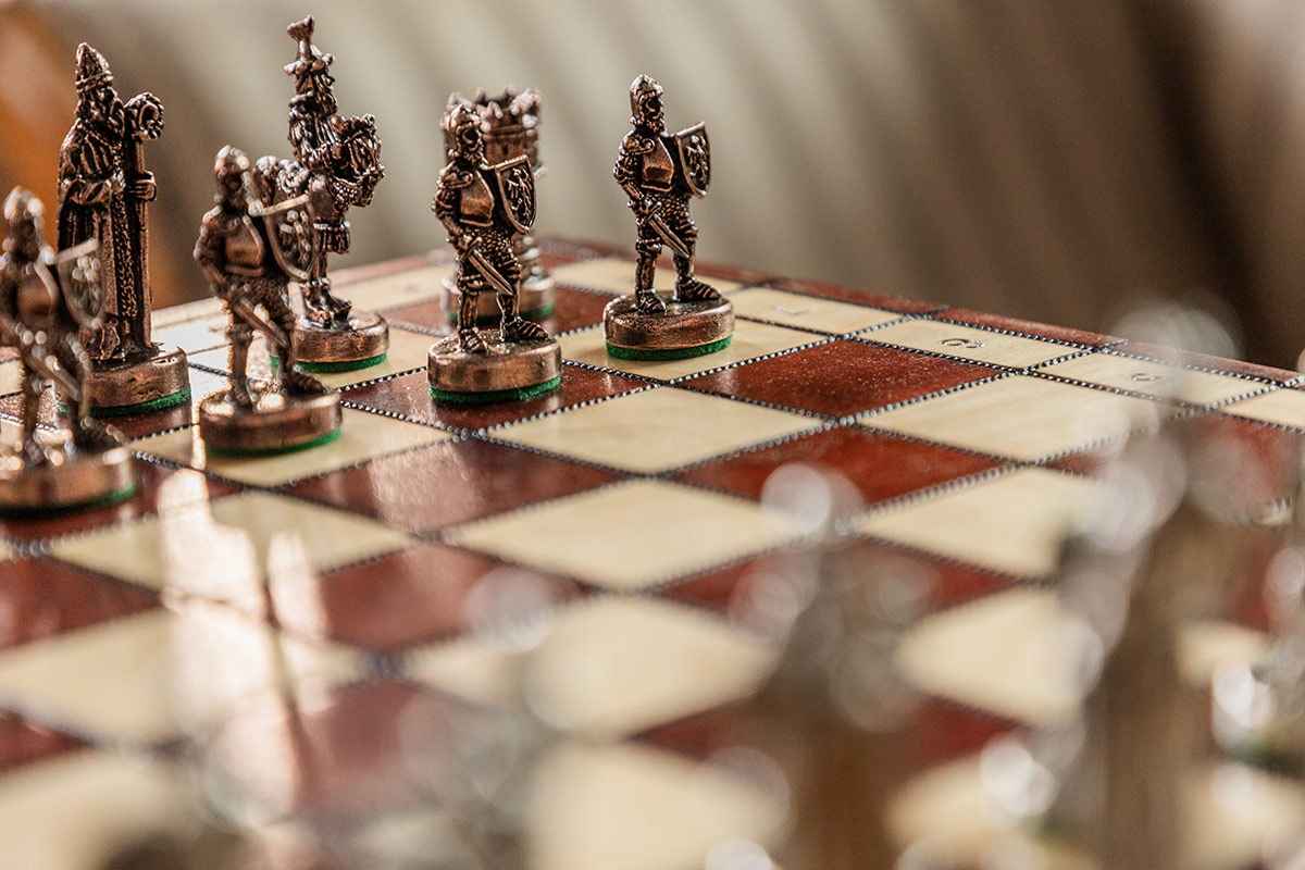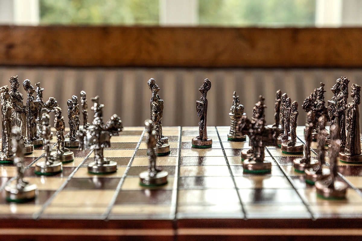 Исторические шахматы с металлическими фигурами по образцу картин Мастера Яна Матейко.