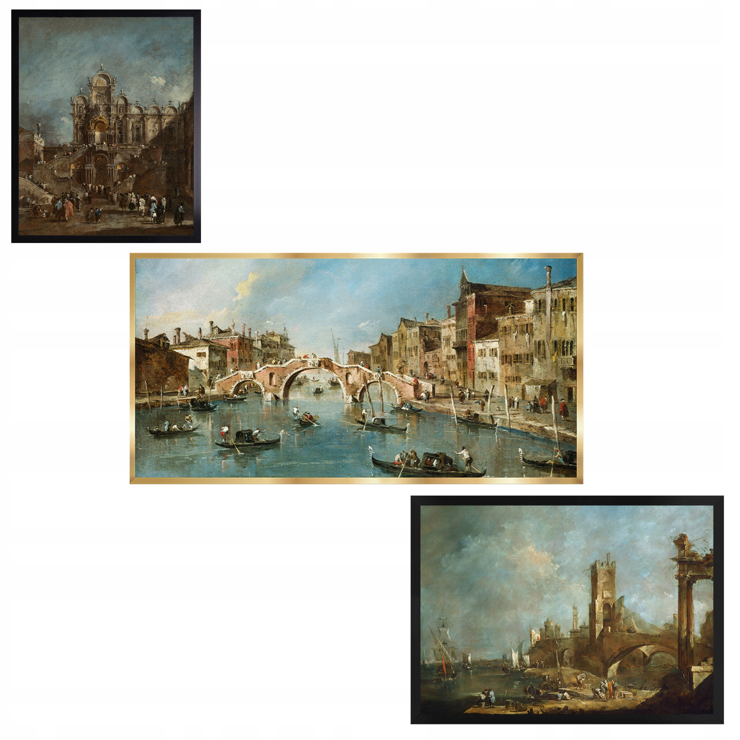 Набор, состоящий из 3-х картин в рамах, репродукций картин Франческо Гварди.