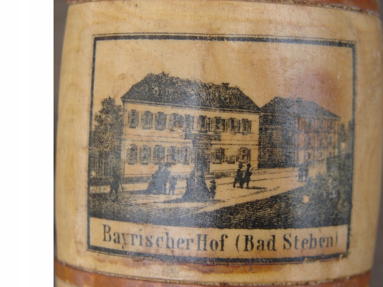 В средней части есть изображение, показывающее здание и надпись bayrischer hof (bad steben)
