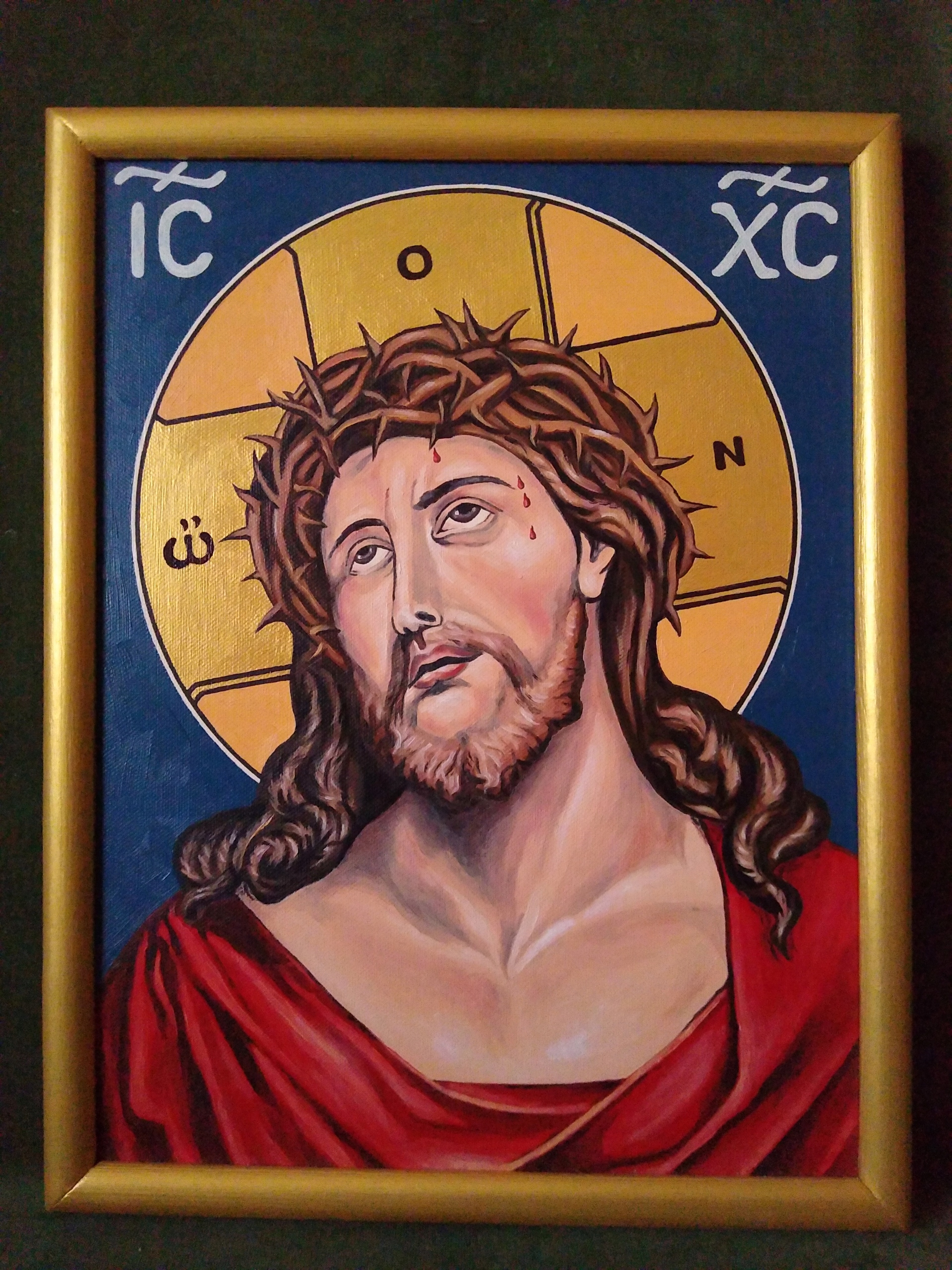 Иисус Христос - икона / образ, нарисованный на холсте, нарисован