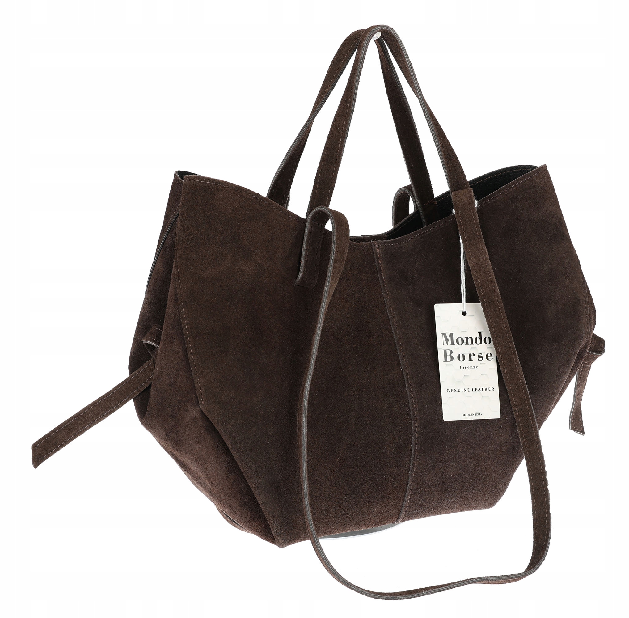 Італійська жіноча сумочка VERA PELLE шкіряна замшева shopper MB09 Шоколадна