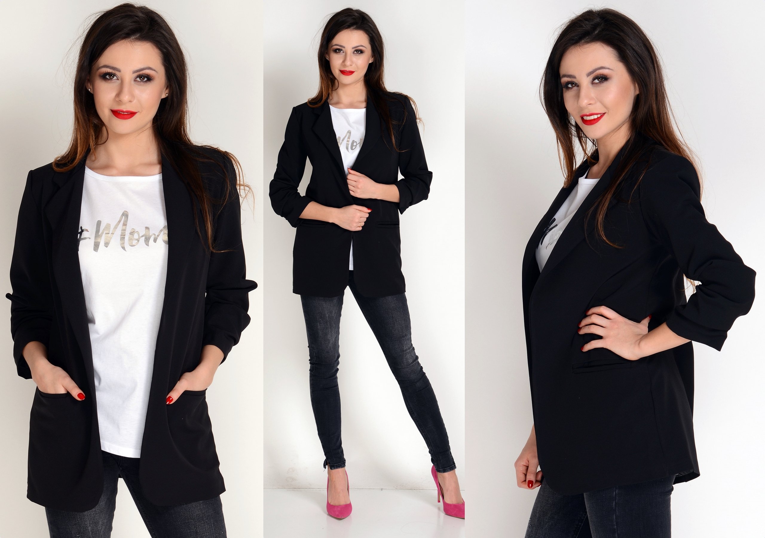 Удлиненная модель смокинга подойдет как для элегантного, так и для повседневного стиля. Прекрасное дополнение к вашему наряду для работы, учебы или вечернего выхода. Драпированные рукава длиной 3/4 придают модели оригинальный характер. Куртку украшают два боковых кармана с эффектными клапанами. Свободный крой, с подкладкой и мягкими подплечниками.