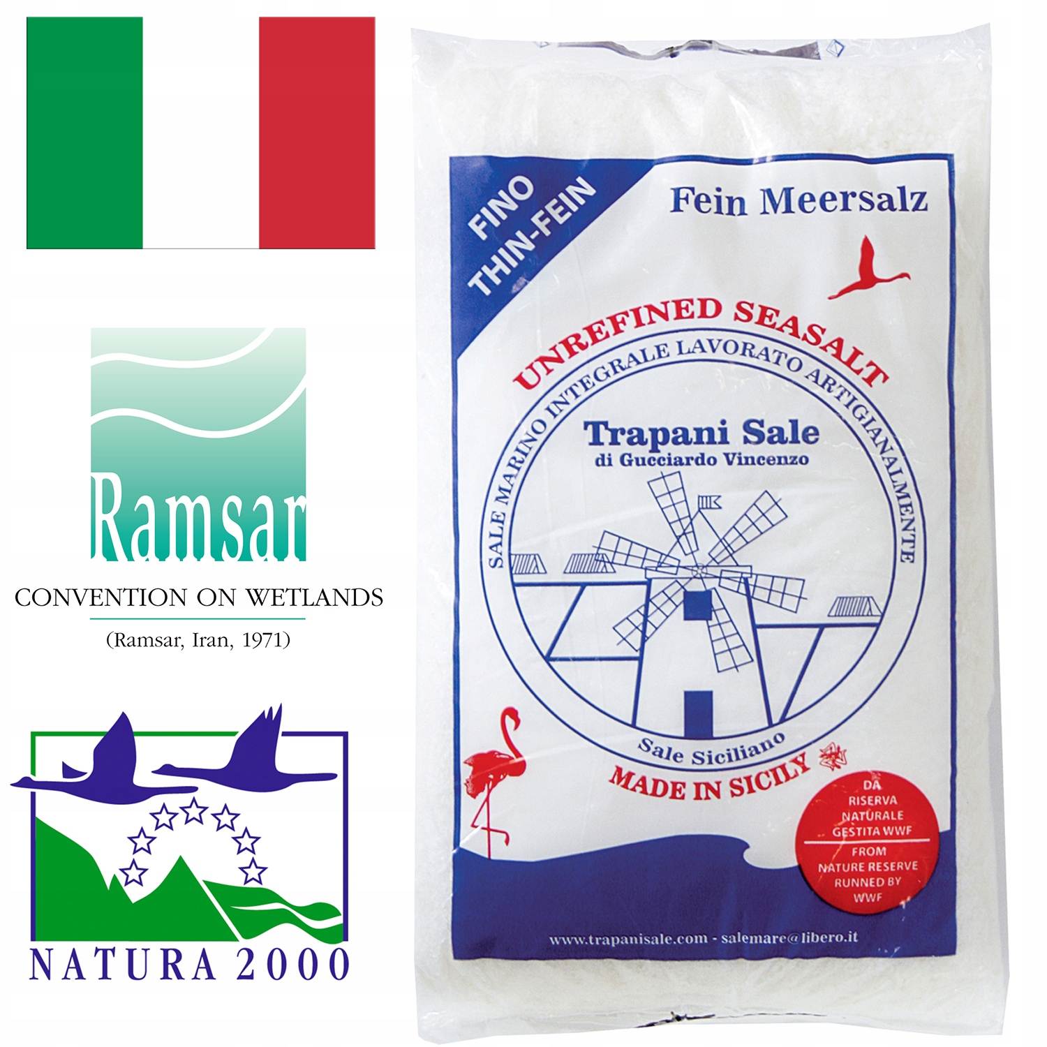 Соль Trapaani производится в древнем солевом руднике moranella в 1884 году в Трапани. Салина расположена в « -ориентированном природном заповеднике », управляемом wwf .