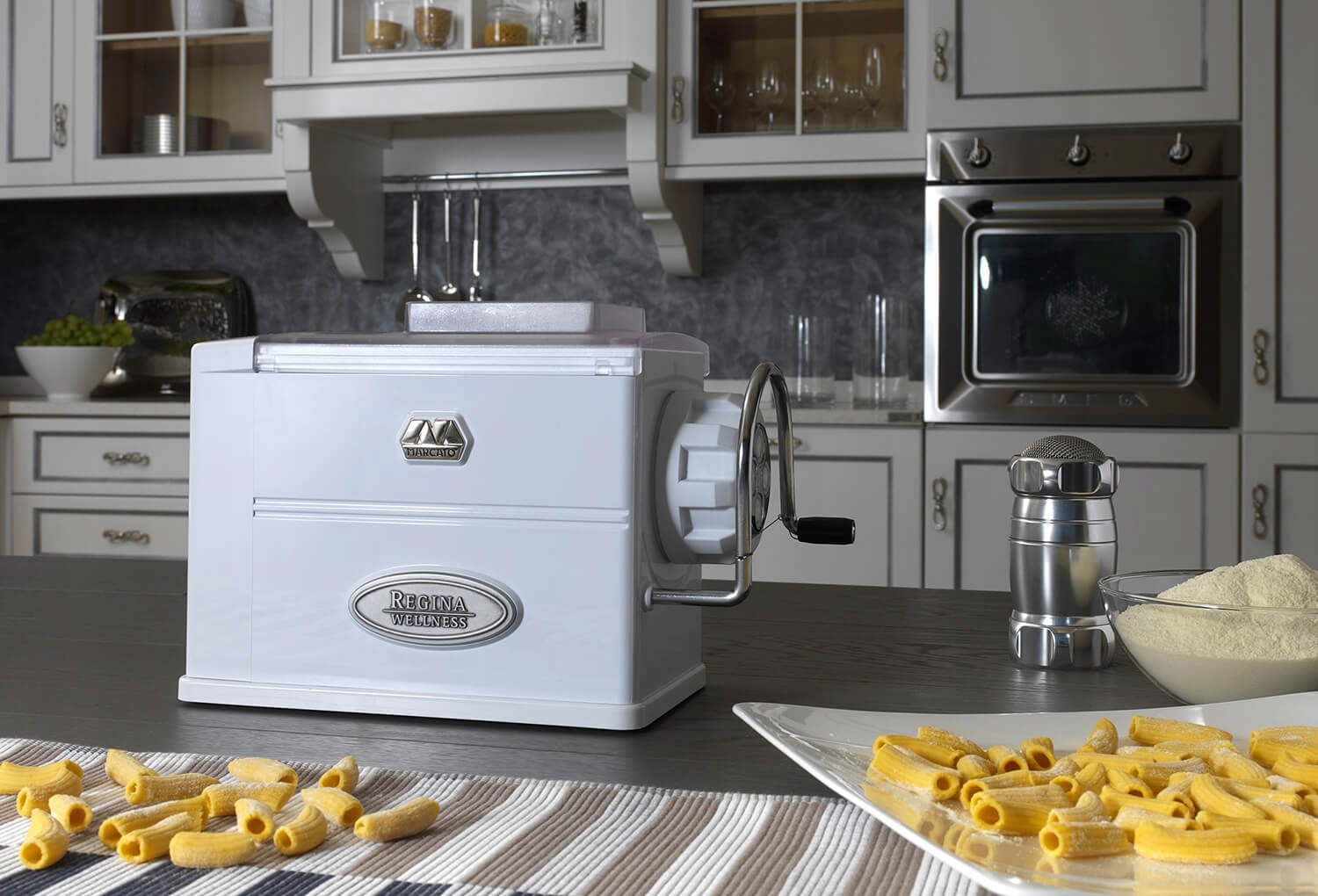Машина, предназначенная для производства макарон овальной формы. Без подходящей машины приготовить такую пасту дома затруднительно. Благодаря Регине это легко и приятно. Сменные матрицы позволяют изготавливать 5 различных форм. Решаем, какая длина макарон нам нужна.