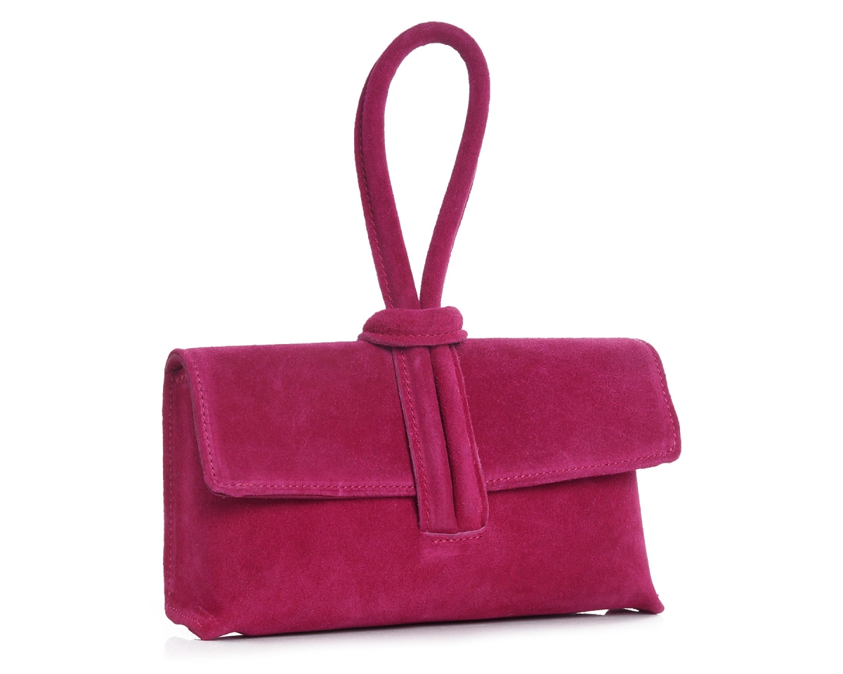кожаная сцепление пакет соли -флора - замшевая фуксия