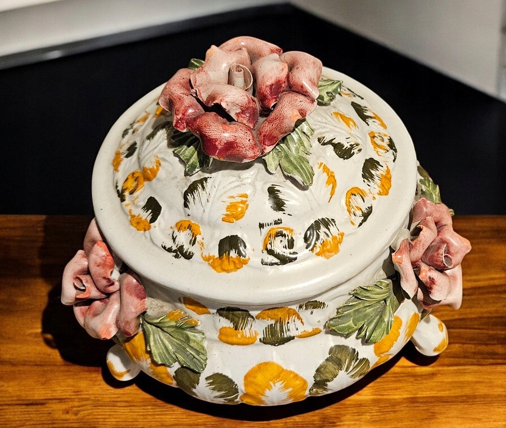 bodzoniera -waza h1> Используется, изготовлен из керамики - итальянский продукт, украшенный мотивами в виде красочных цветов. Шоколадная коробка сделана с вниманием к деталям. Применение с возраста (70-80 веков) я определяю состояние навсегда.