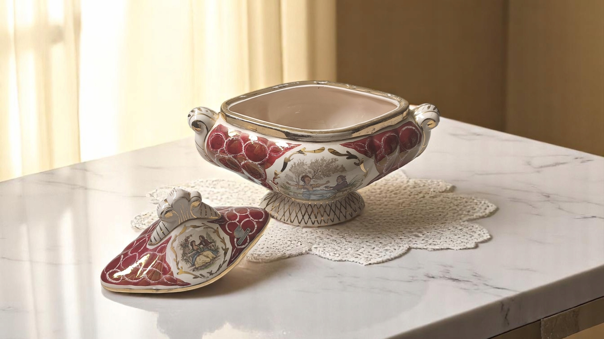 boboniera h1> керамика, украшенная мотивами в форме красочных жанровых сцен. Шоколадная коробка сделана с вниманием к деталям. Несмотря на возраст (70-80-х годов прошлого века), я определяю состояние навсегда. h1> Я очень рекомендую h1>