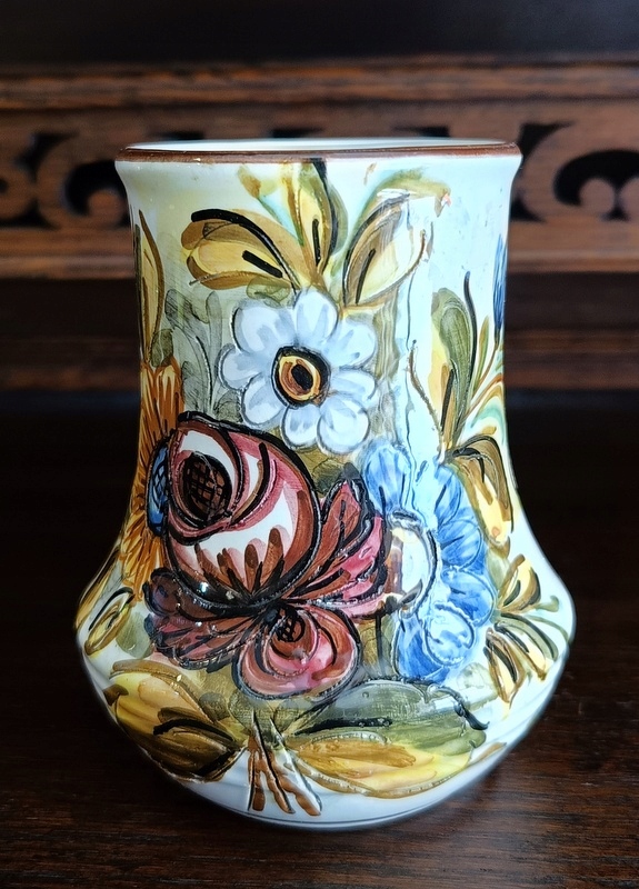 итальянская ваза Tastelli h1> Аукцион представляет красоту прекрасной керамической вазы итальянской итальянской производства итальянской итальянской производства. Особое внимание следует уделять замечательному дизайну и уникальным цветам. Продукт 80 -х годов прошлого века находится в очень хорошем состоянии h1> идеально подходит как случайное или необычное украшение - поэтому я очень рекомендую его !!! высота 12,8 см, диаметр отверстия 6,3 см, диаметр основания 6,5 см, макс. Диаметр 10 см.