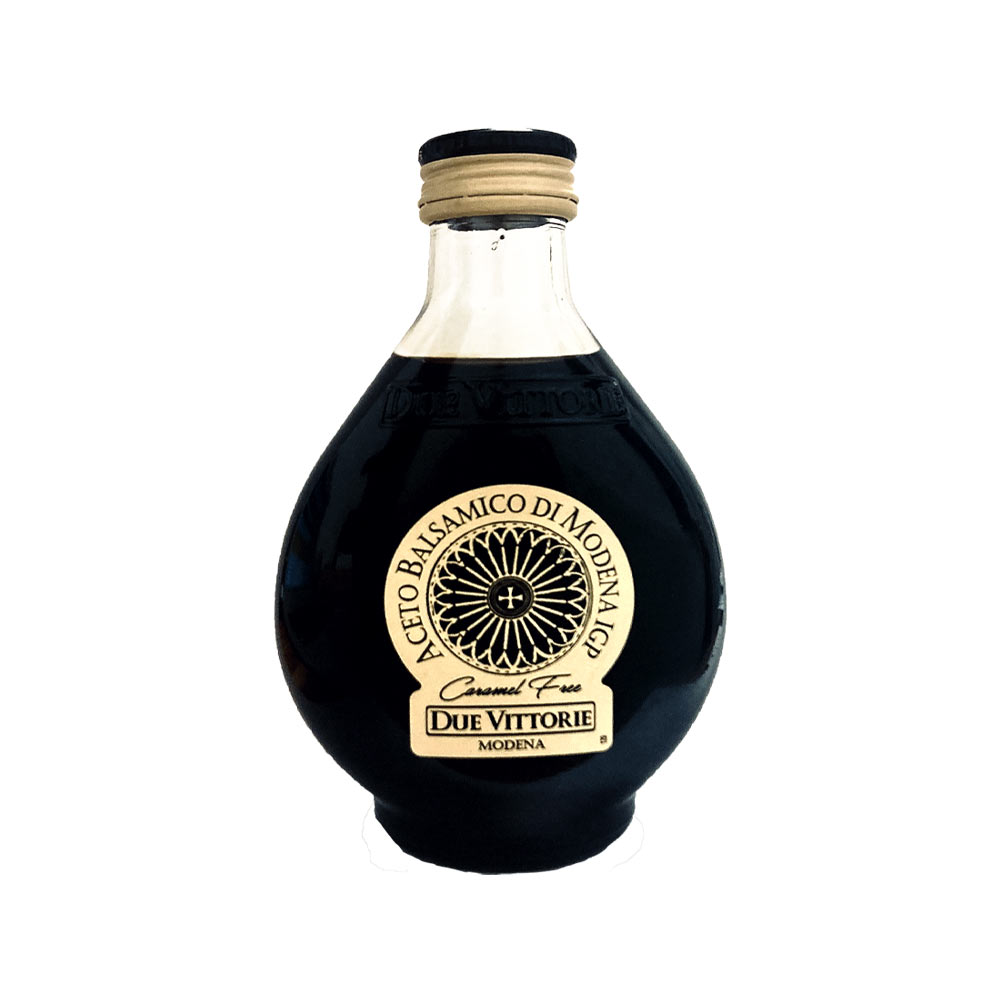 Бальзамический уксус IGP из Модены от Due Vittorie — это базовый вариант натурального бальзамического уксуса. Уксус, изготовленный на основе вареного виноградного сусла и высококачественного винного уксуса, отличается отсутствием искусственных красителей и красителей, в том числе карамели, которая повсеместно присутствует в подобных продуктах. Продукт представляет собой экономичный вариант знаменитых выдержанных уксусов Due Vittoria, предназначенный для заправок и гастрономического применения.