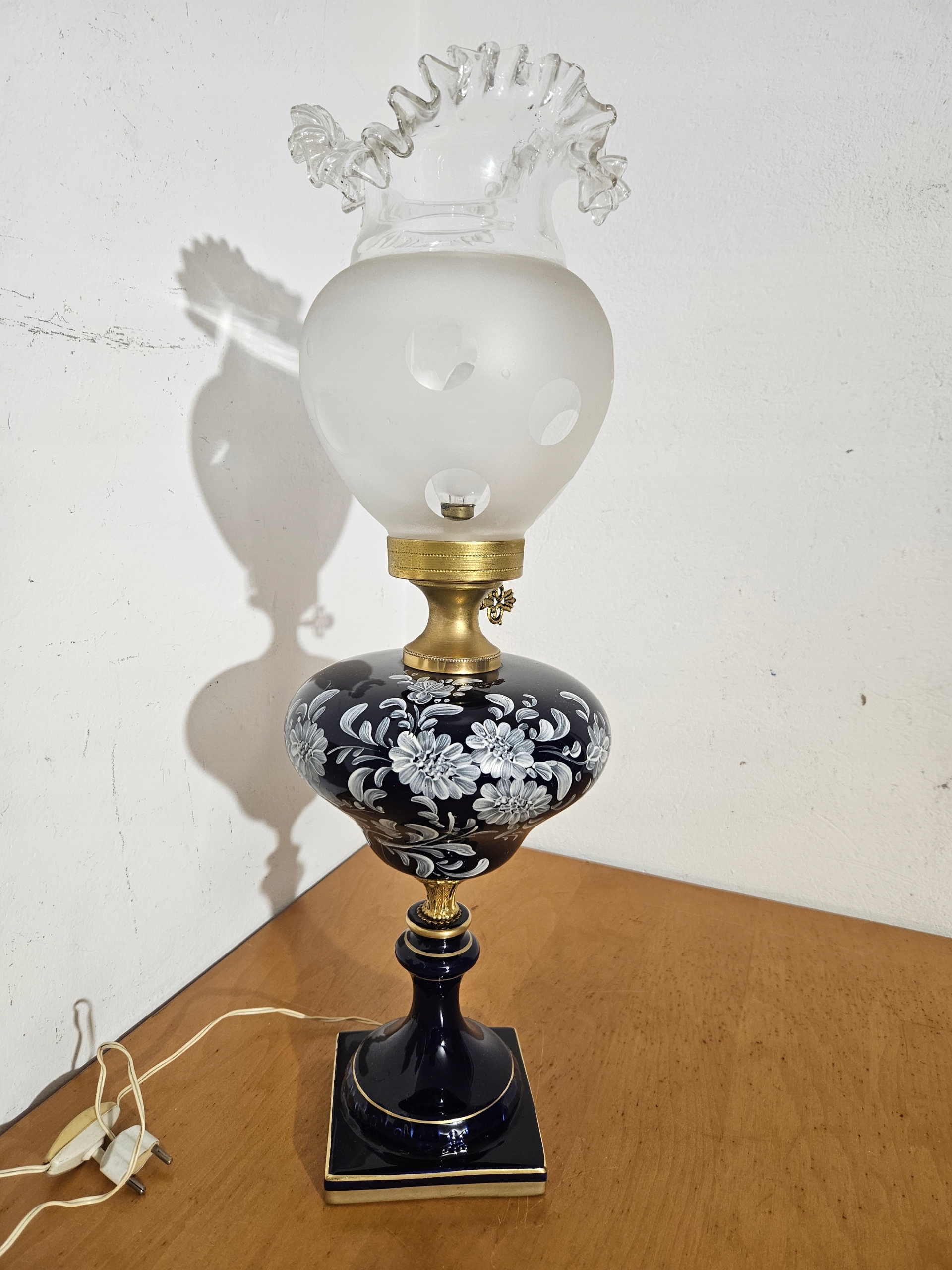 Итальянский стильный светильник Лампа с керамическим основанием и абажуром-тюльпаном