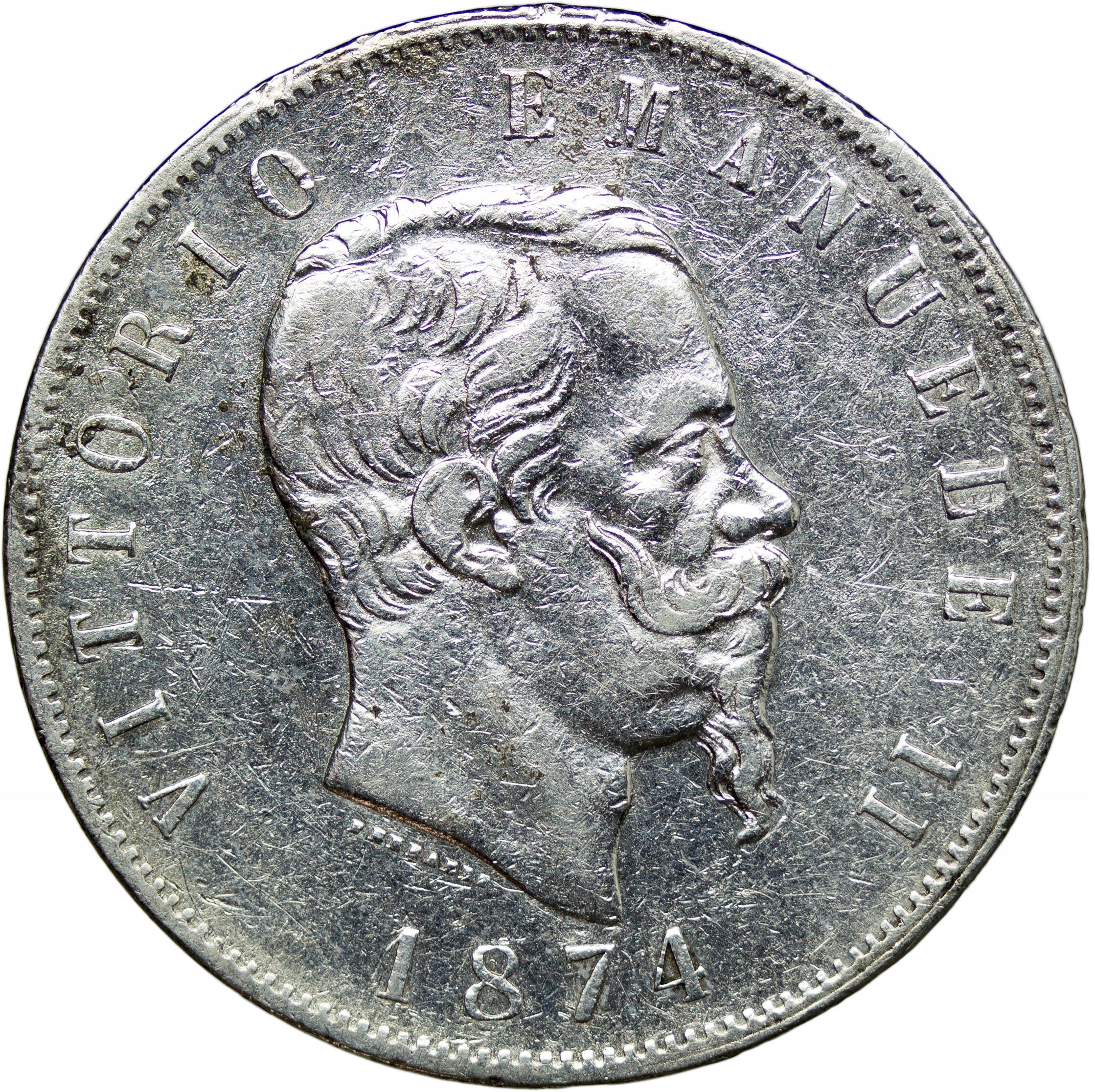 Італія, 5 лір 1874 р., Віктор Еммануїл II, вул