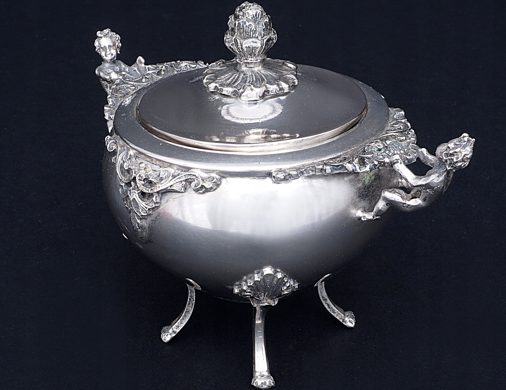 Италия ........ Серебряная сахарная чаша с купидами ....... 180 гр. h1>
