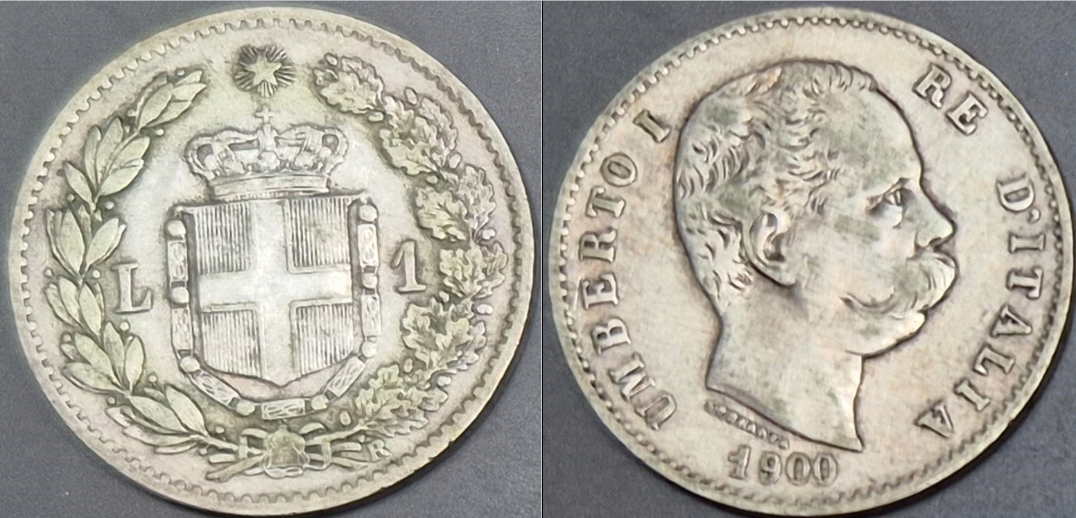 Италия 1 лир 1900 км 24 Умберто I - Серебро
