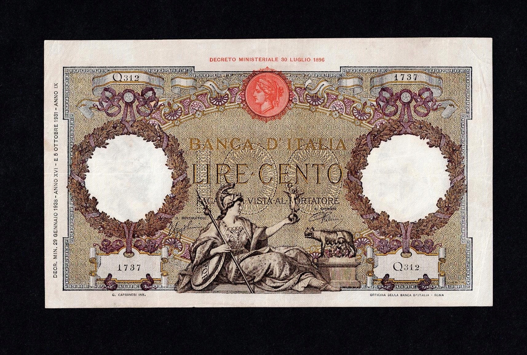 WŁOCHY 100 LIRÓW 1938 P#55b VF++ RZADKI