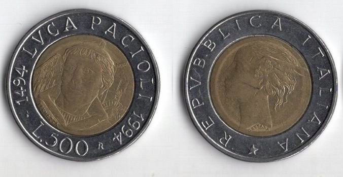 Италия 1994 500 Lire Pacioli