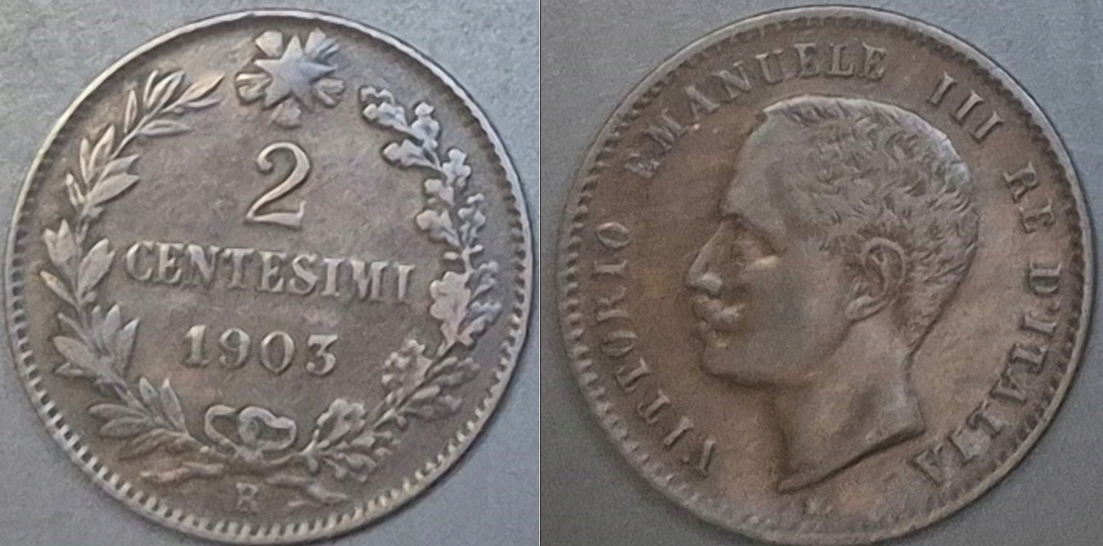 Италия 2 Centesimi 1903 Wiktor Emmanuel III