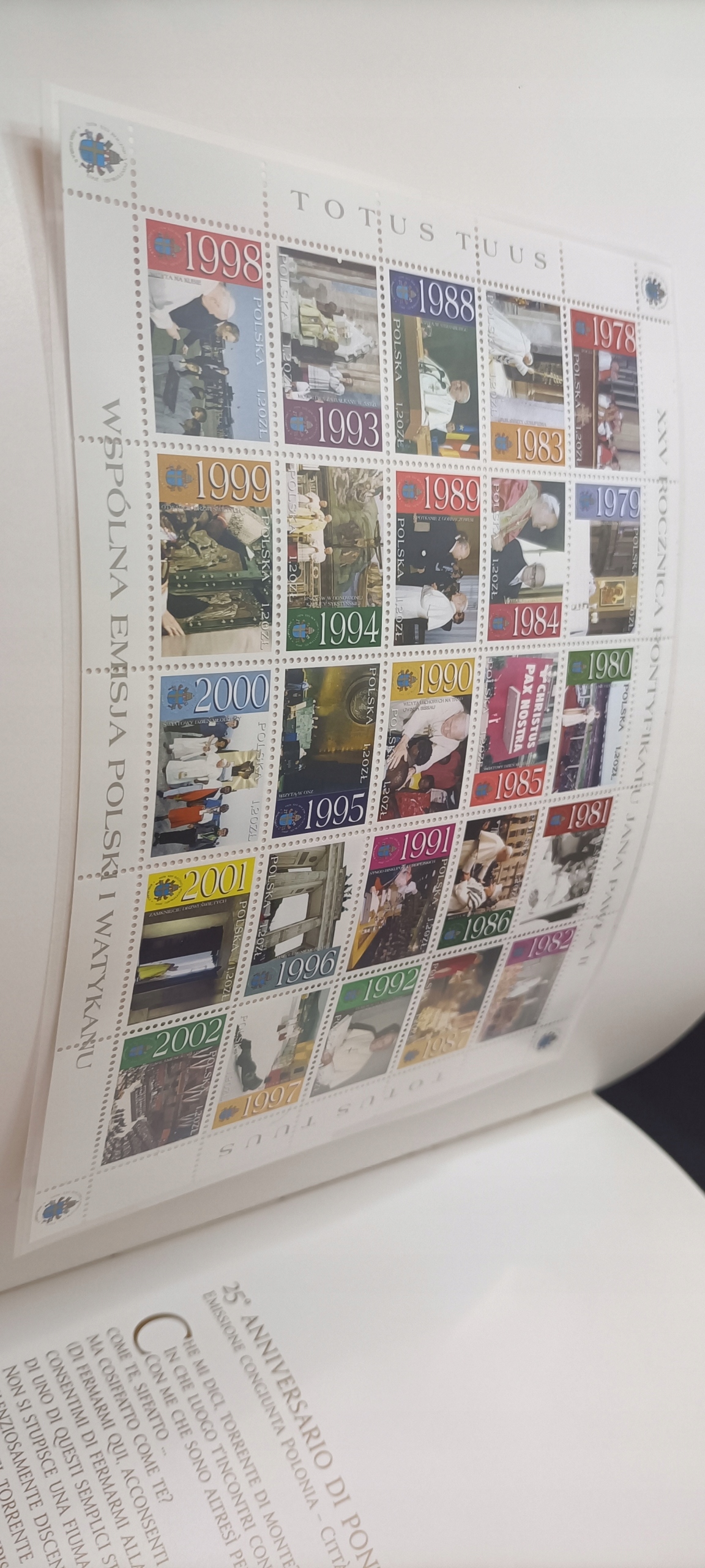 2015 «ИОАНН ПАВЕЛ II НА ПОЛЬСКИХ ПОЧТОВЫХ МАРКАХ» — уникальный альбом-каталог, изданный на трёх языках: польском, итальянском и английском. Около 100 страниц содержат репродукции всех филателистических произведений, посвященных Святому Иоанну Павлу II, изданных Poczta Polska в 1979–2014 годах. Каждая страница содержит: короткую цитату папы, основную мысль, фрагмент речи, графику и репродукцию, имеющую филателистическую ценность. Красивые фотографии и иллюстрации показывают места, связанные с культом и фигурой Папы Римского.
