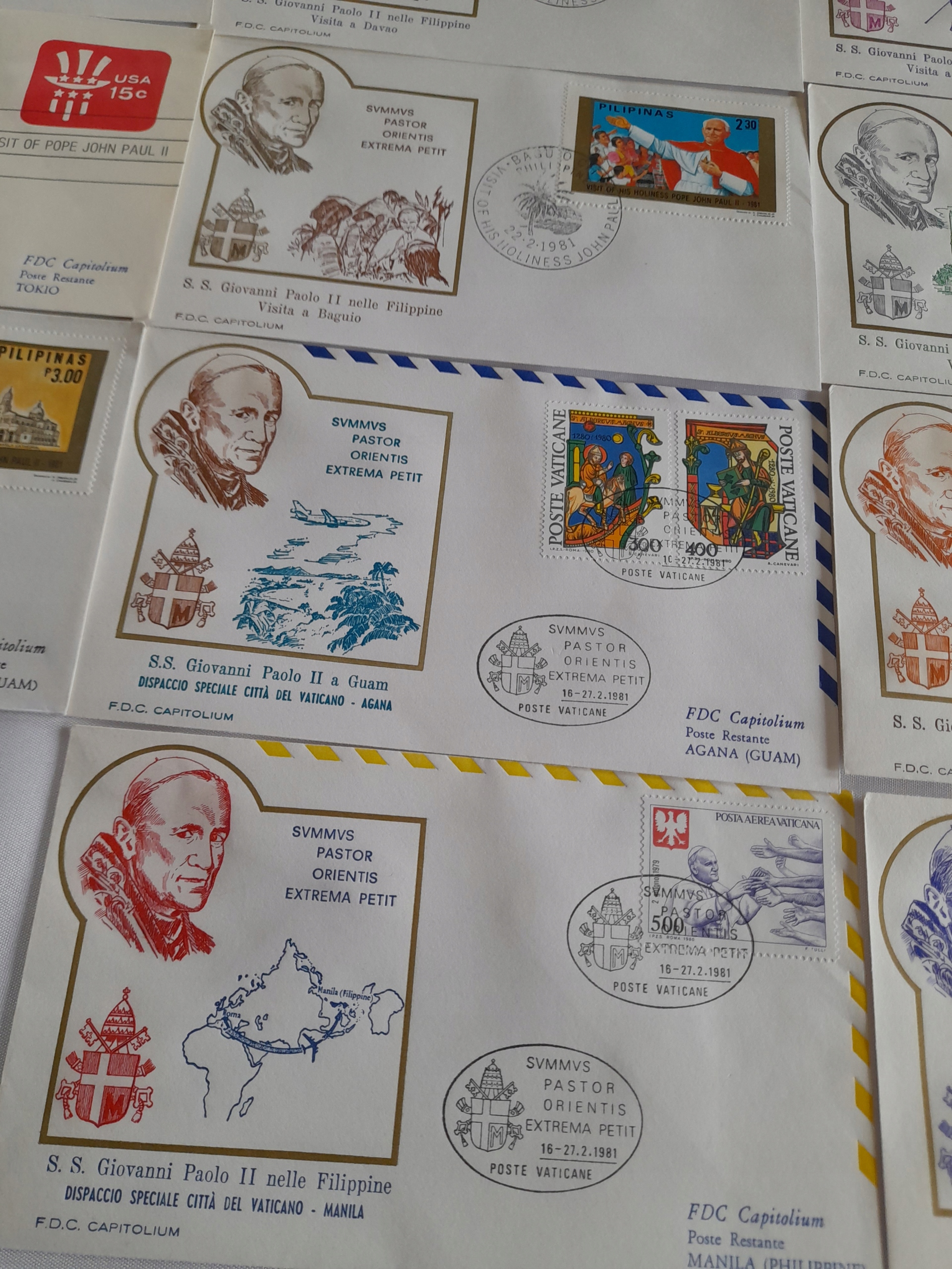 ИОАНН ПАВЕЛ II. ДРАГОЦЕННЫЙ НАБОР ИЗ 18 ПРЕДМЕТОВ FDC В ОРИГИНАЛЬНОЙ УПАКОВКЕ. Все показано на фотографиях. Состояние как на фотографиях.