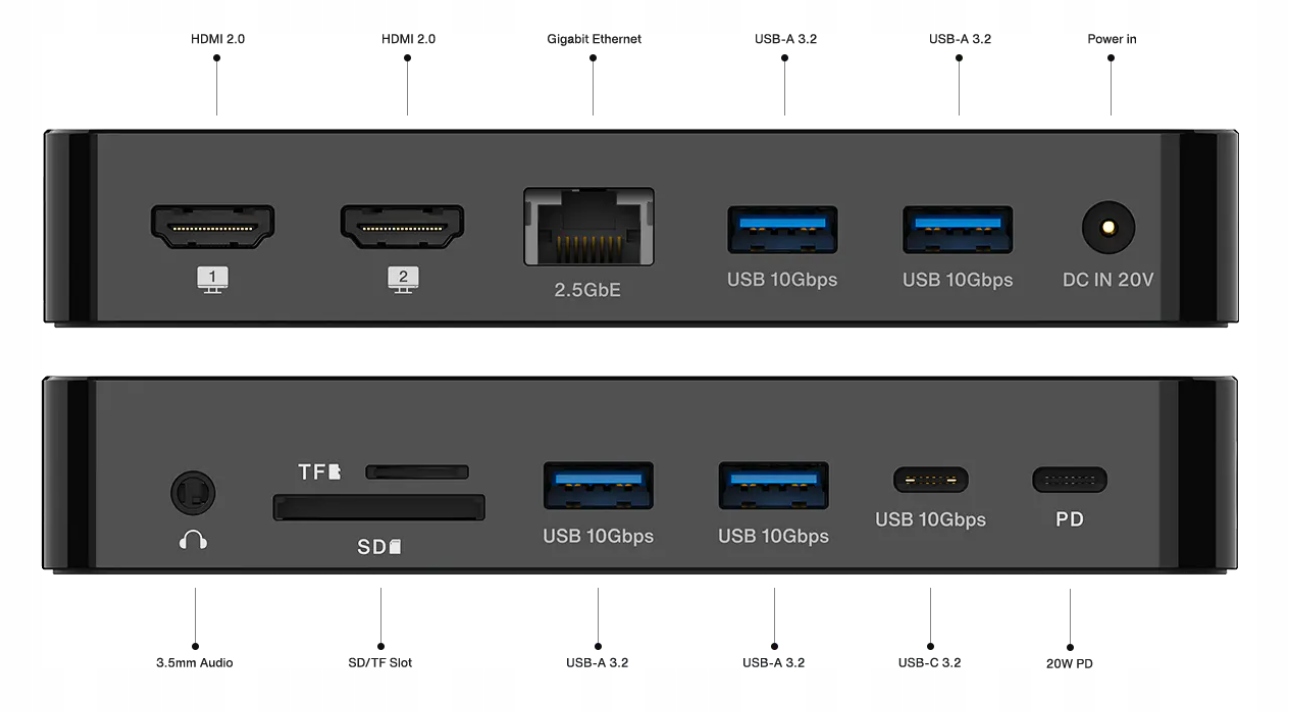 【Передача данных 10 ГБ/с】, оснащенные 4 портами USB 3.2, которые могут поддерживать передачу данных на 10 ГБ/с и позволяют вам подключить достаточно внешних разработок. Спекнет карт SD/TF 4.0 может работать до 312 мб/с, а Gigabit Ethernet Port RJ45 может плавно и стабильной сети Ethernet 2,5 ГБ/с