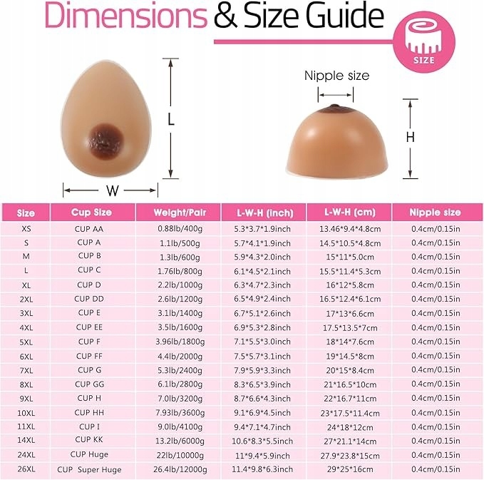 Безопасный материал: 100% силиконовый гель, ультра -подключенный, дружеский, естественно, адаптируется к телу, к прикосновению, как настоящий бюст. Это быстро восстанавливает форму лаков и осторожно прыгает во время движения. Чрезвычайно высокая гибкость.