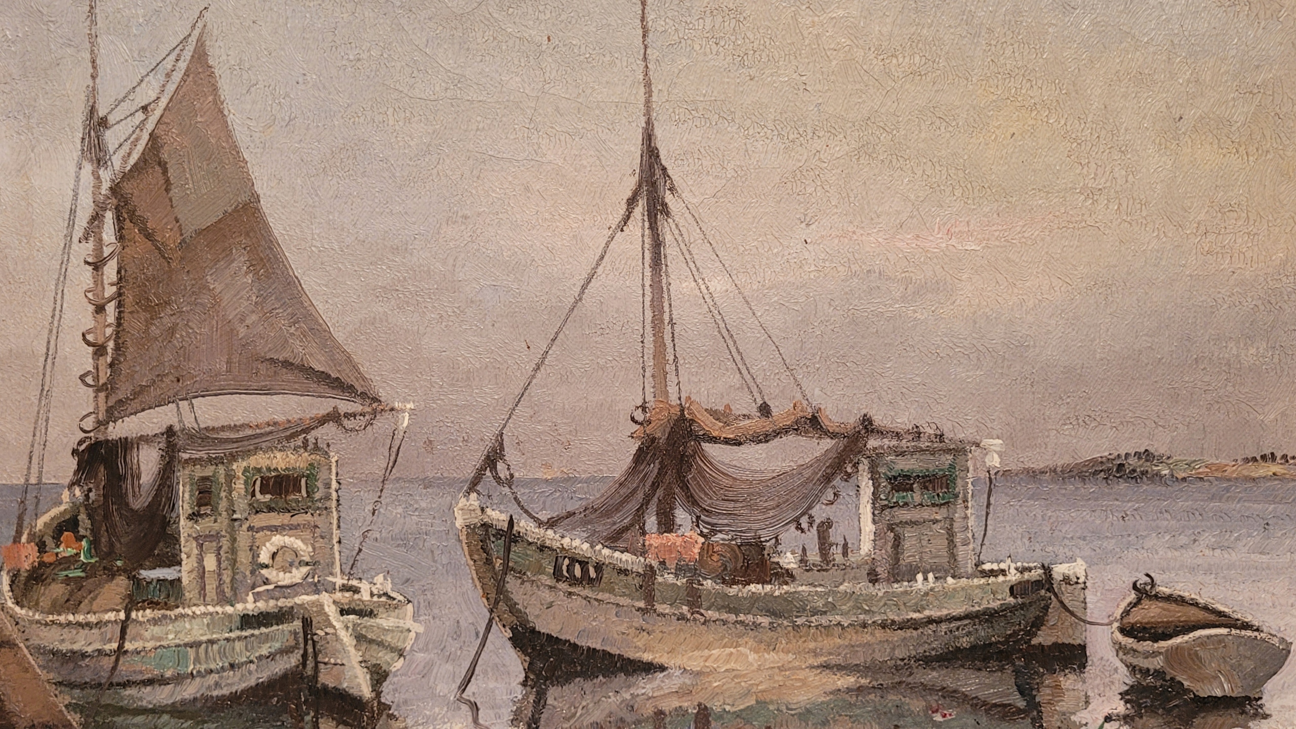 Предмет продажи — красивая старинная картина маслом “ РЫБЬЦОВЫЕ ЛОДКИ». p>