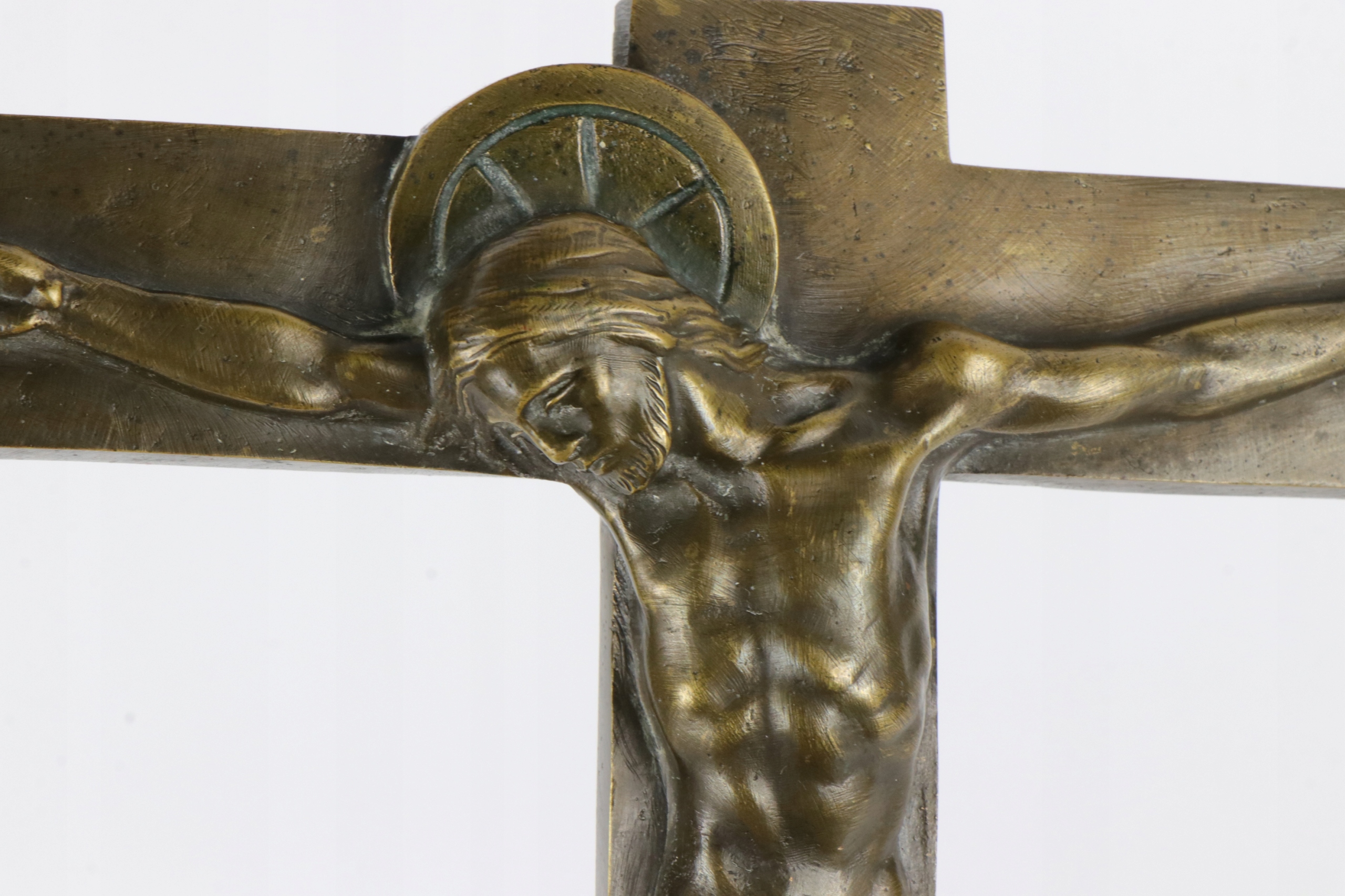 Иисус Христос в красивом стиле ар-деко. Крест примерно 1920-1930 годов. Крест отлит из бронзы. Подпись Хартманн. В основании креста также имеется бронзовая отметка на реверсе у основания креста, номер 731 23 LE
