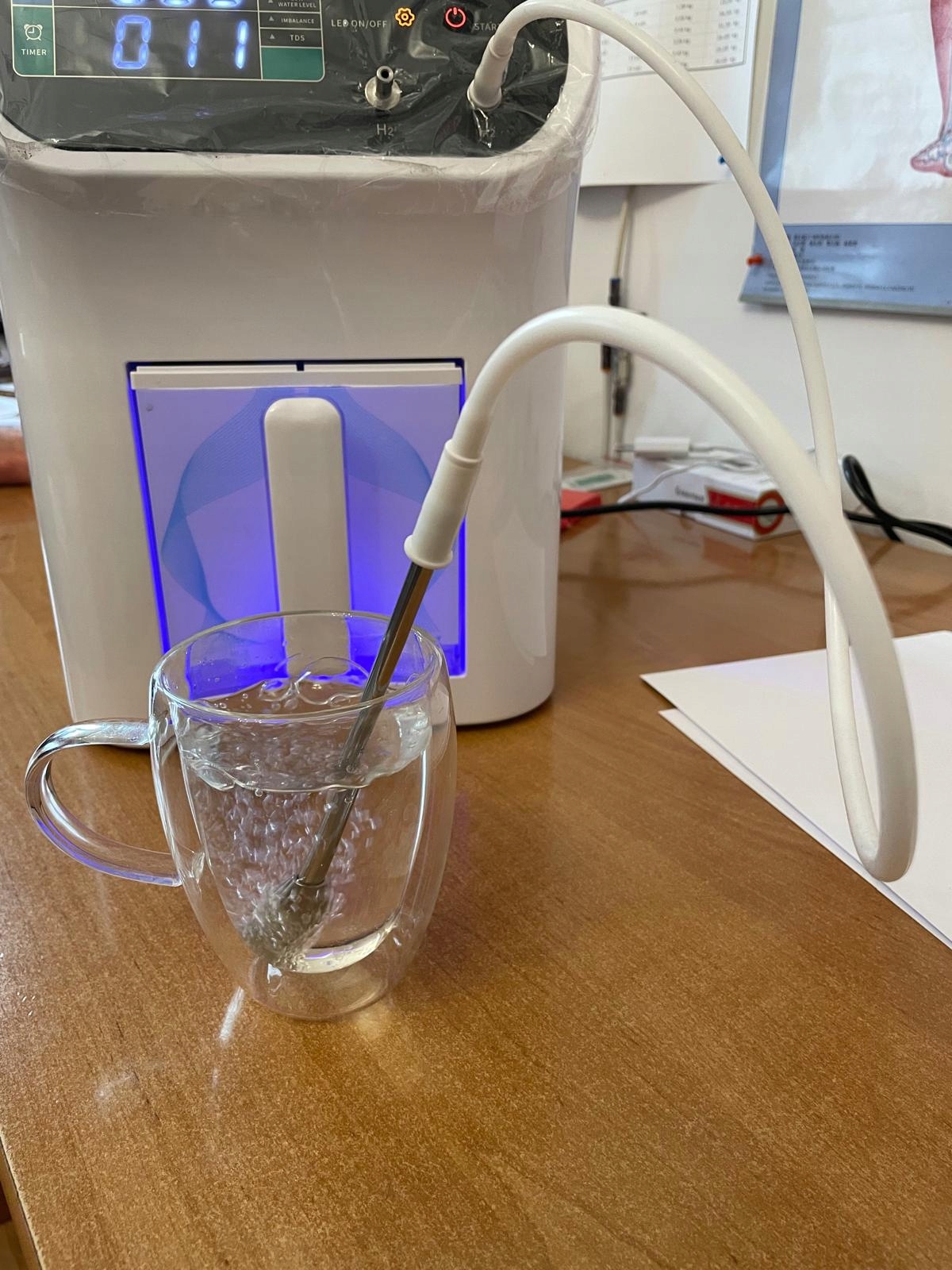 HIM-19 также можно использовать для производства водородной воды. Благодаря новейшей электролизе SPE/PEM технологии, образуемый газовый водород состоит из 99,9% чистого и безопасного водорода, без каких -либо других по -продуктов, таких как хлор и озон.