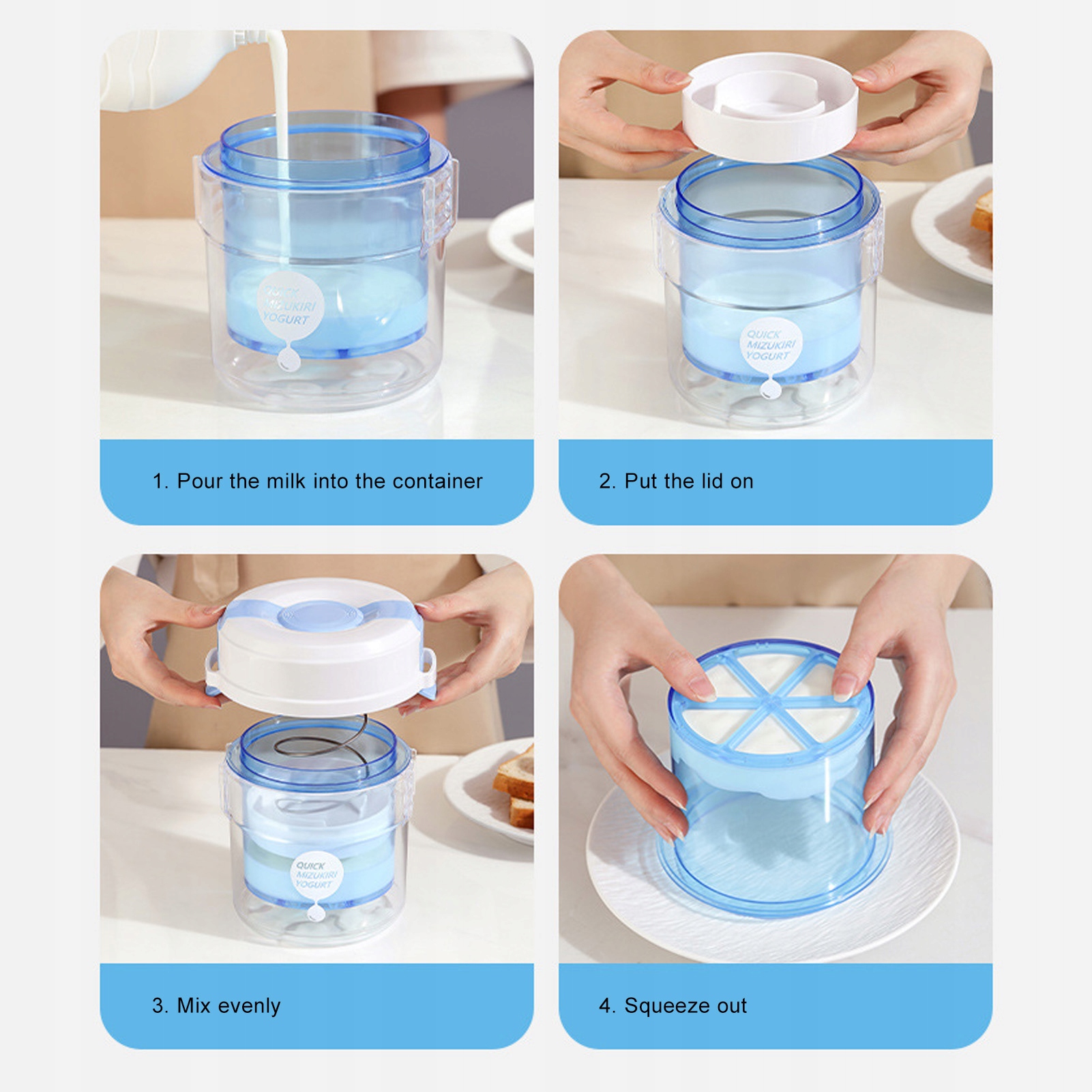 5. Простой в использовании: Регулируемый фильтр йогурта прост в использовании; Просто вылейте йогурт в фильтр, накройте крышкой и прохладным для достижения богатого и сливочного йогурта, он очень удобен для повседневного использования.