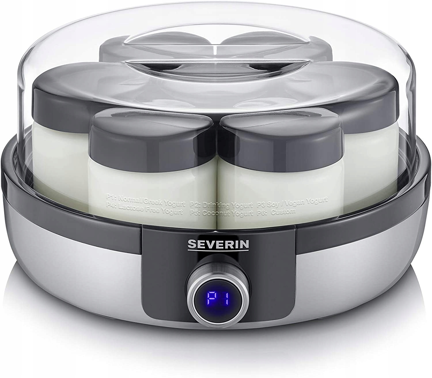 7 стеклянных баночек емкостью 150 мл каждая с плотными крышками обеспечивают идеальное и безопасное хранение — благодаря им йогурт можно взять с собой на работу или в школу.