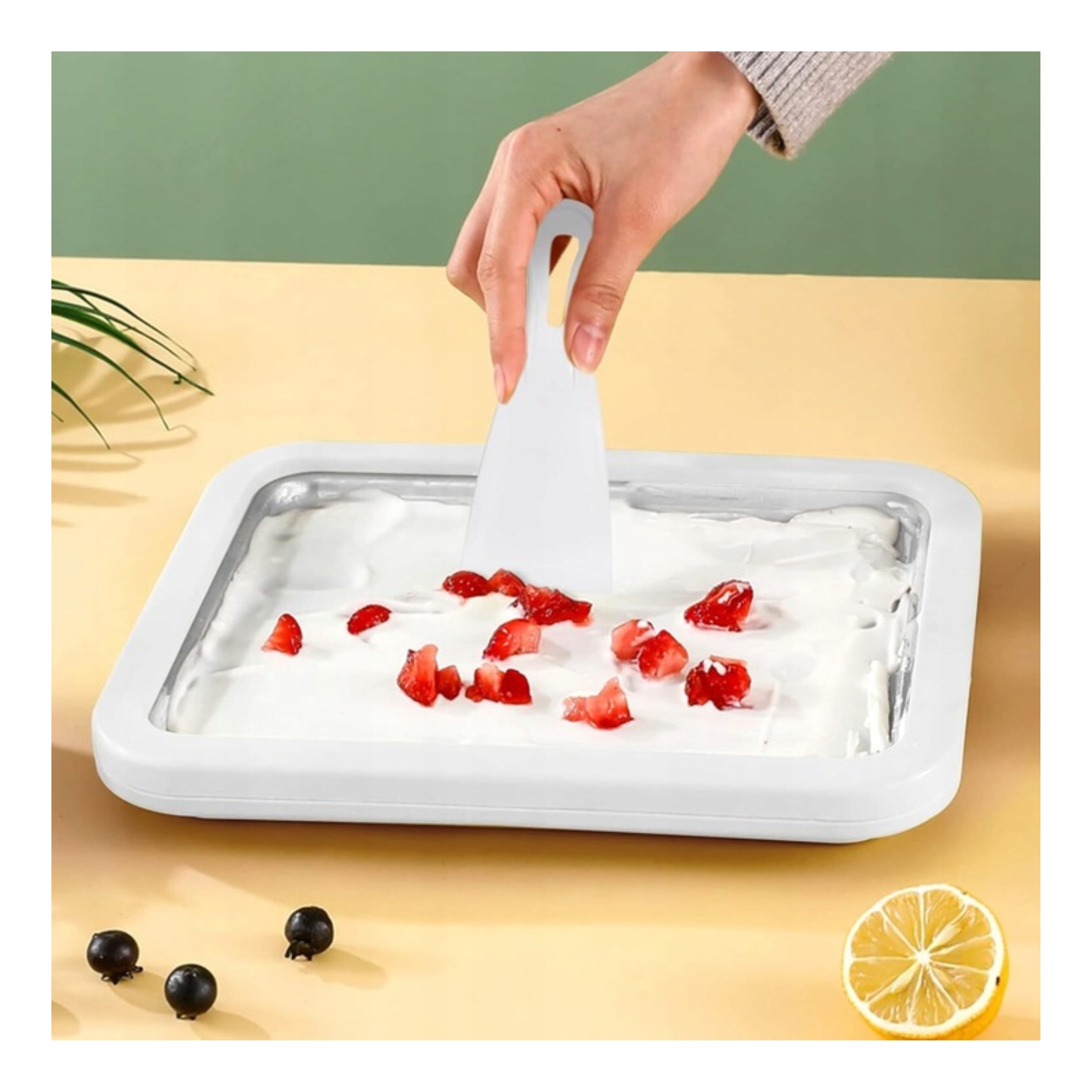 МАШИНА ДЛЯ ЙОГУРТОВОГО МОРОЖЕНОГО ИЗ НЕРЖАВЕЮЩЕЙ СТАЛИ И ПЛАСТИКА(Размеры: 22,5 x 17,5 x 3,5 см)