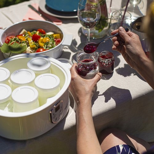 С этой йогуртницей легко приготовить домашние молочные и растительные йогурты, а также кефир. Вы можете приготовить их вместе с детьми, пропагандируя домашнюю обработку. Благодаря возможности регулировки времени работы и температуры вы можете запрограммировать работу устройства в соответствии с инструкциями используемого вами рецепта. Электронный дисплей позволяет контролировать процесс созревания йогурта. Стеклянные контейнеры с крышками облегчают хранение готового продукта. Стоит попробовать! Вы наверняка будете удивлены, насколько просто это решение.
