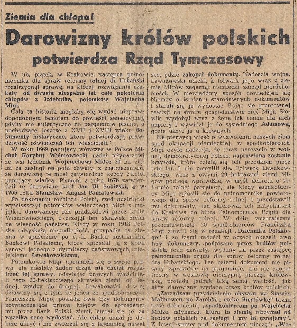 . Статья под названием «Пожертвования польских королей подтверждается временным правительством»